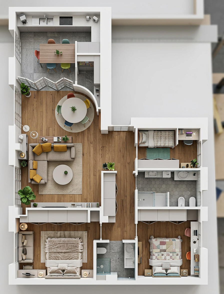 create a realistic render of this image maintain all colors and materials