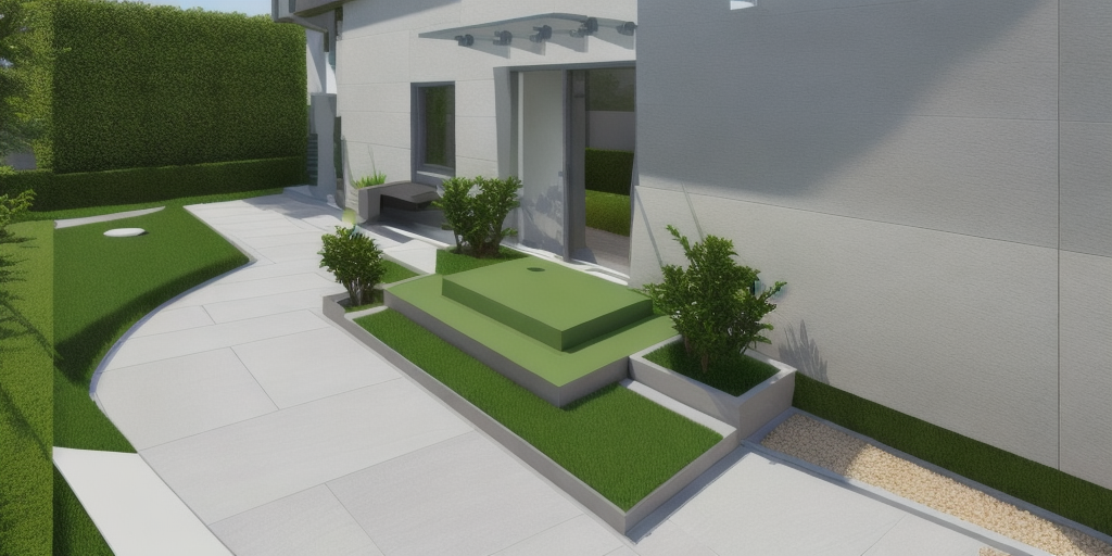 functionalism exterior shot tropical lush landscape south florida style locate the house in a typical florida neighborhood on a beautiful sunny day white tan stone color texture show trees in the background typical 3 tab shingle roof architecture
