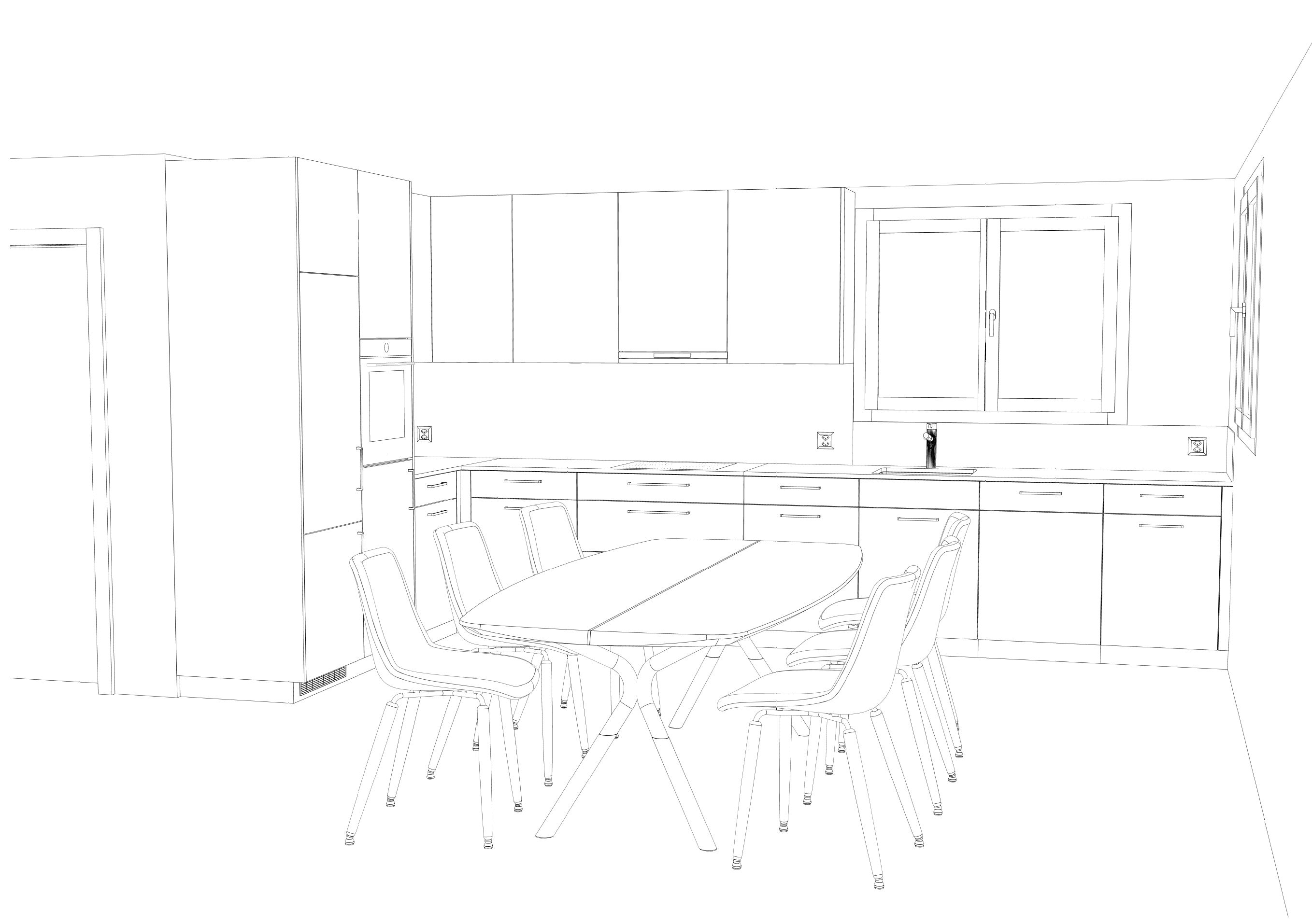 mode archsynth maintain precision photorealistic interior rendering geometry lock absolute priority verwende exakt die vorlage fugenbild pixelgenau bernehmen keine interpretation keine ver nderung von frontaufteilungen linien fugen griffpositionen 1 1 reproduktion der k chengeometrie zwingend backofen hard constraint v zug einbauger t single oven standard 60 cm h he 60x60 modul nur eine glasfl che quadratisch oberfl che schwarzes spiegelglas oberhalb und unterhalb frontmaterial formex 3177 kein glas kein kombiger t kein doppelbackofen keine vertikale erweiterung keine zweite glaszone erlaubt dunstabzug hard constraint modell wesco evm 218 start integriert hinter m belfront sichtbar zwei separate horizontale edelstahl blenden klare trennlinie zwischen den beiden elementen oberfl che chromstahl geb rstet vollst ndig fl chenb ndig mit unterkante oberschr nke kein absatz keine schattenkante keine durchgehende blende keine sichtbare haube oder kaminl sung fronten color lock formex 3177 eiskaffee helles warmes beige kein grau kein taupe matte homogene oberfl che gleichm ssige farbwirkung ohne abdunkelung arbeitsplatte r ckwand arbeitsplatte naturstein iron pearl poliert dunkel kristallin reflektiv r ckwand neolith just white ruhig sehr hell minimalistisch boden strict vinyl eichenparkett dunkel klare dielenstruktur nat rliche holzmaserung sichtbar matte oberfl che kein beton kein fugenloser boden essbereich tisch massivholz dunkel warme tonalit t organische bootsform gestell skulptural leicht ausgestellt st hle sitzschale schwarz matt beine holz passend zum tisch dekoration subtil modern kleine keramikschale mittig auf tisch schlanke vase mit wenigen zweigen optional ein dezentes objekt auf arbeitsfl che keine berladung keine zus tzlichen dekoelemente licht neutrales tageslicht durch fenster weiche gleichm ssige ausleuchtung frontfarbe muss korrekt und hell lesbar bleiben stil schweizer qualit tsk che ruhig pr zise hochwertig fokus auf materialit t und proportion negative constraints maximal strikt keine ver nderung des fugenbildes kein doppelbackofen kein kombiger t keine durchgehende glasfl che im hochschrank keine einteilige haubenblende kein betonboden keine grauen oder zu dunklen fronten keine zus tzlichen architektonischen elemente output fotorealistisches high end rendering exakte bauteilproportionen keine kreative interpretation nur pr zise umsetzung
