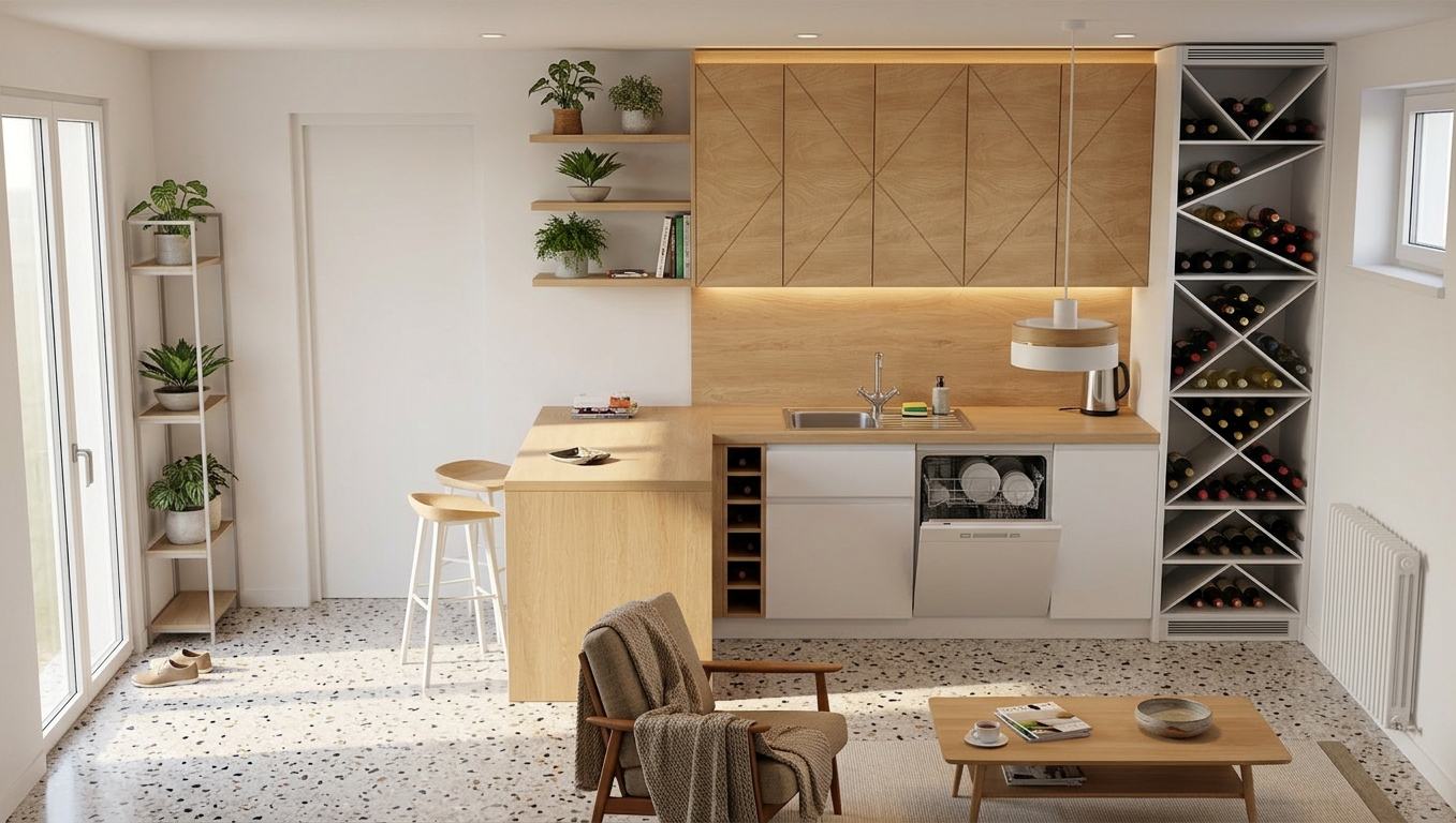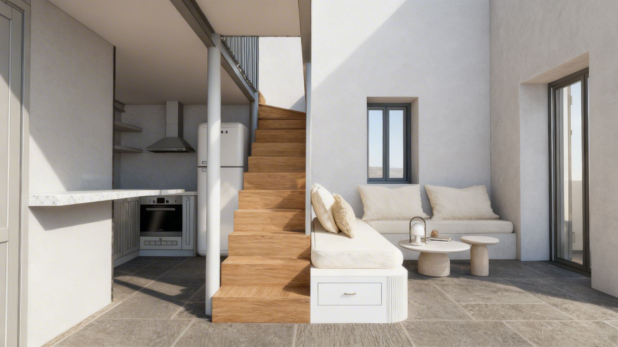 convert this floor plan into a minimalist isometric 3d view of a full house show the space from an elevated angle with furniture walls and details visible keep plan unmodified do not move the doors use the same furniture as shows on the plan do not change the orientation of the floorplan