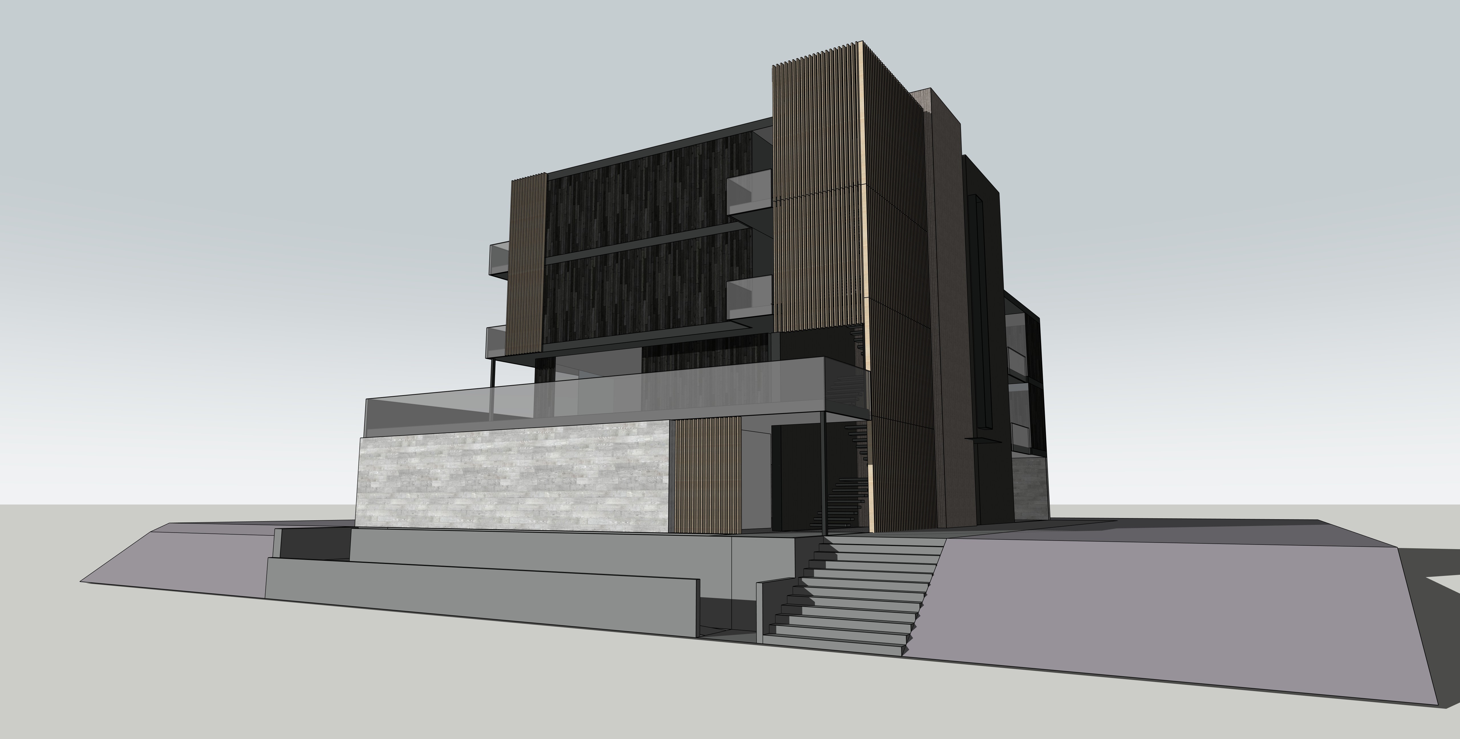 building sits near a forest the new apartment building in the pnw uses wood concrete and glass as its main architectural elements provide some ambient fog to create a mood