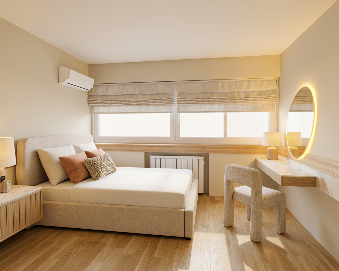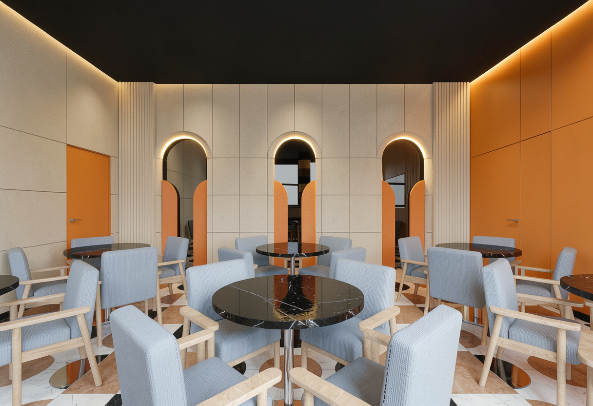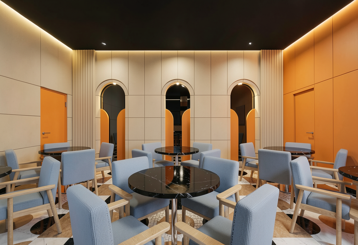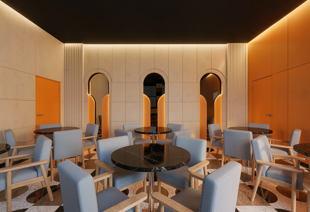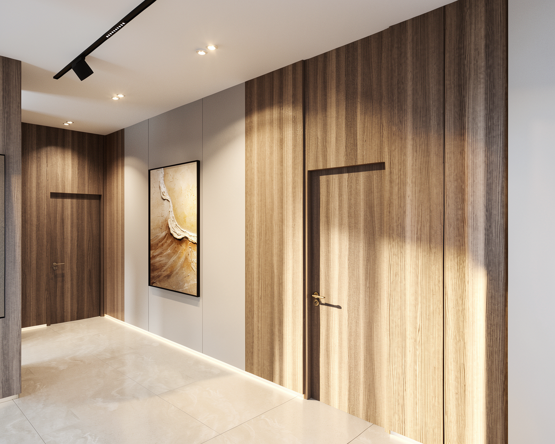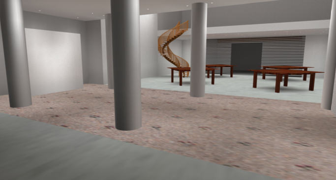 modern architecture with high end concrete flooring and a carpeted floor down the center corridor