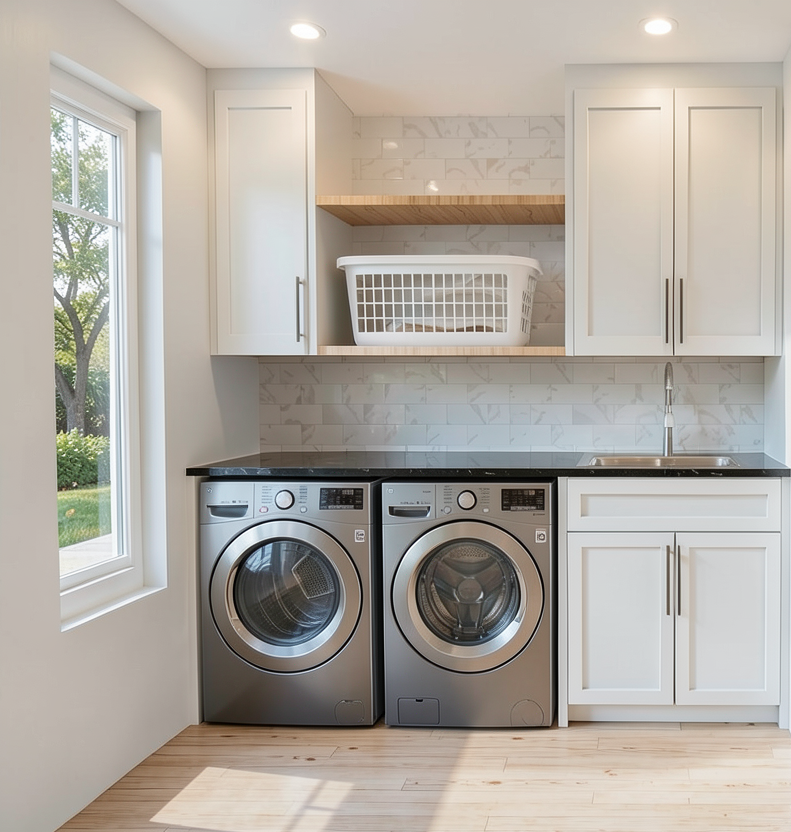 add decor and small plants to shelving and countertop