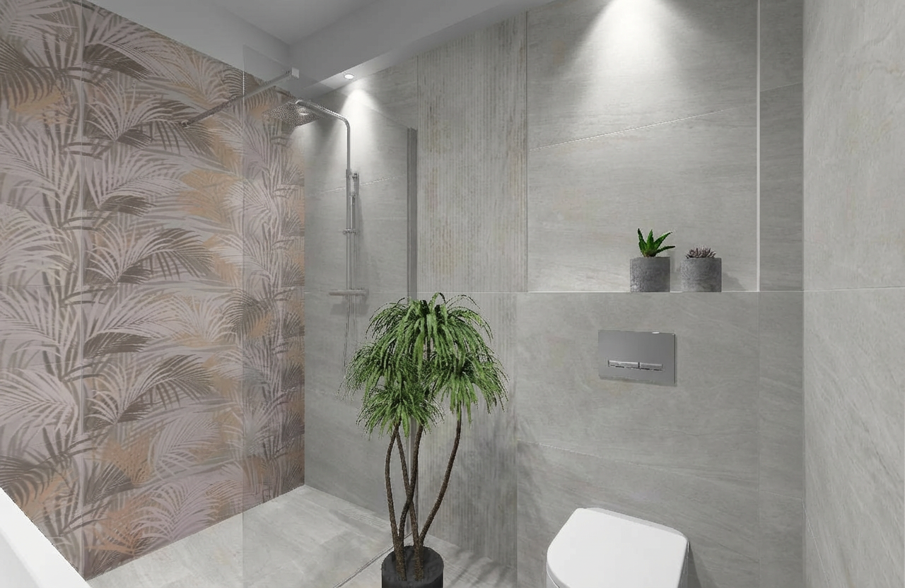 there are vertical led lights at the main entrances facade tile layout as in the picture better but needs to adjust the tones base tone light gray accents dark red burgundy