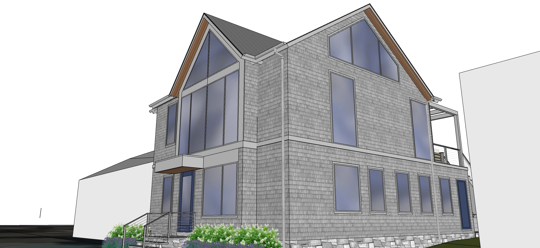 this is a beach house in rehoboth maryland you can t see the ocean in the image can you enhance the landscaping with grasses and sand native to rehoboth all trim is light grey