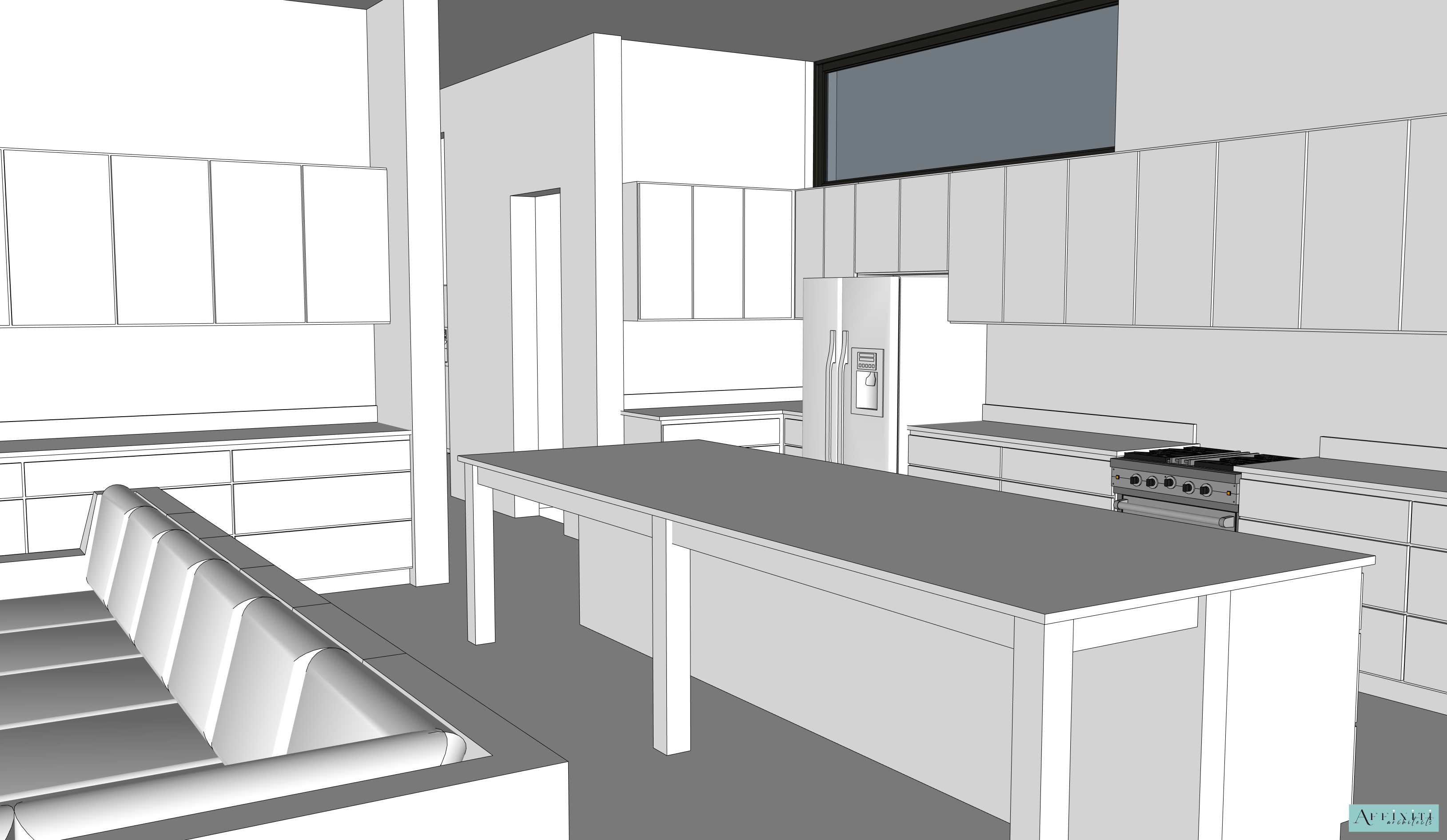 modern farmhouse open concept kitchen and living room interior white shaker cabinetry with soft warm undertones natural stone countertops in white and gray with subtle movement and organic veining white farmhouse apron front sink with matte black gooseneck faucet matte black cabinet hardware and door levers black industrial metal pendant lights with brass accent details above the island light neutral subway tile backsplash with soft gray grout warm light oak wood flooring with natural grain variation living room styled in warm neutral tones with linen or cotton upholstery layered textures minimal but cozy decor bright sunny daytime lighting natural light streaming through large windows soft shadows balanced exposure clean high end modern farmhouse aesthetic with subtle industrial contrast photorealistic materials realistic metal finishes soft fabric textures architectural photography 35mm lens