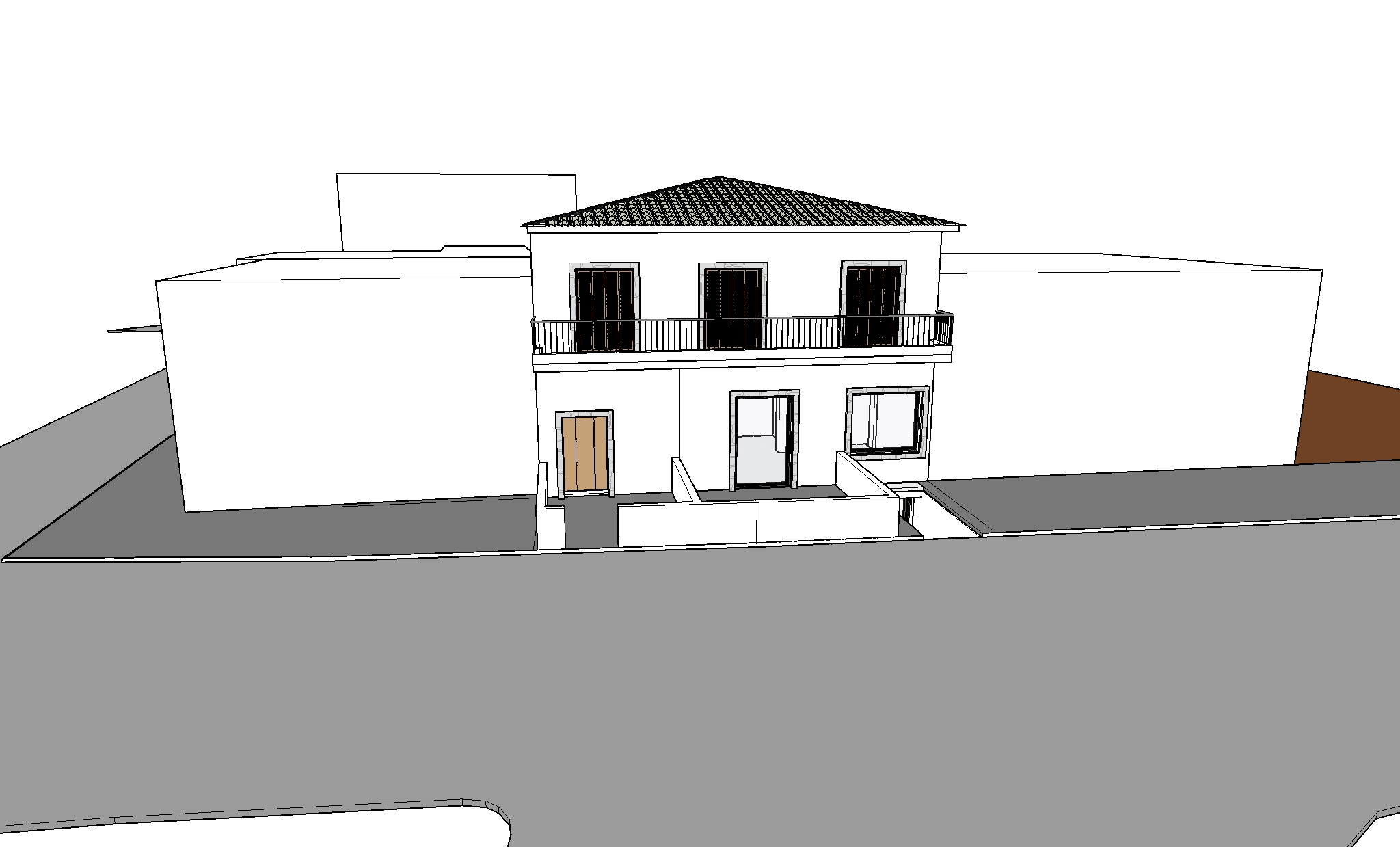 exterior shot traditional building tile roof stonework on ground floor stone courtyard little vegetation wooden windows