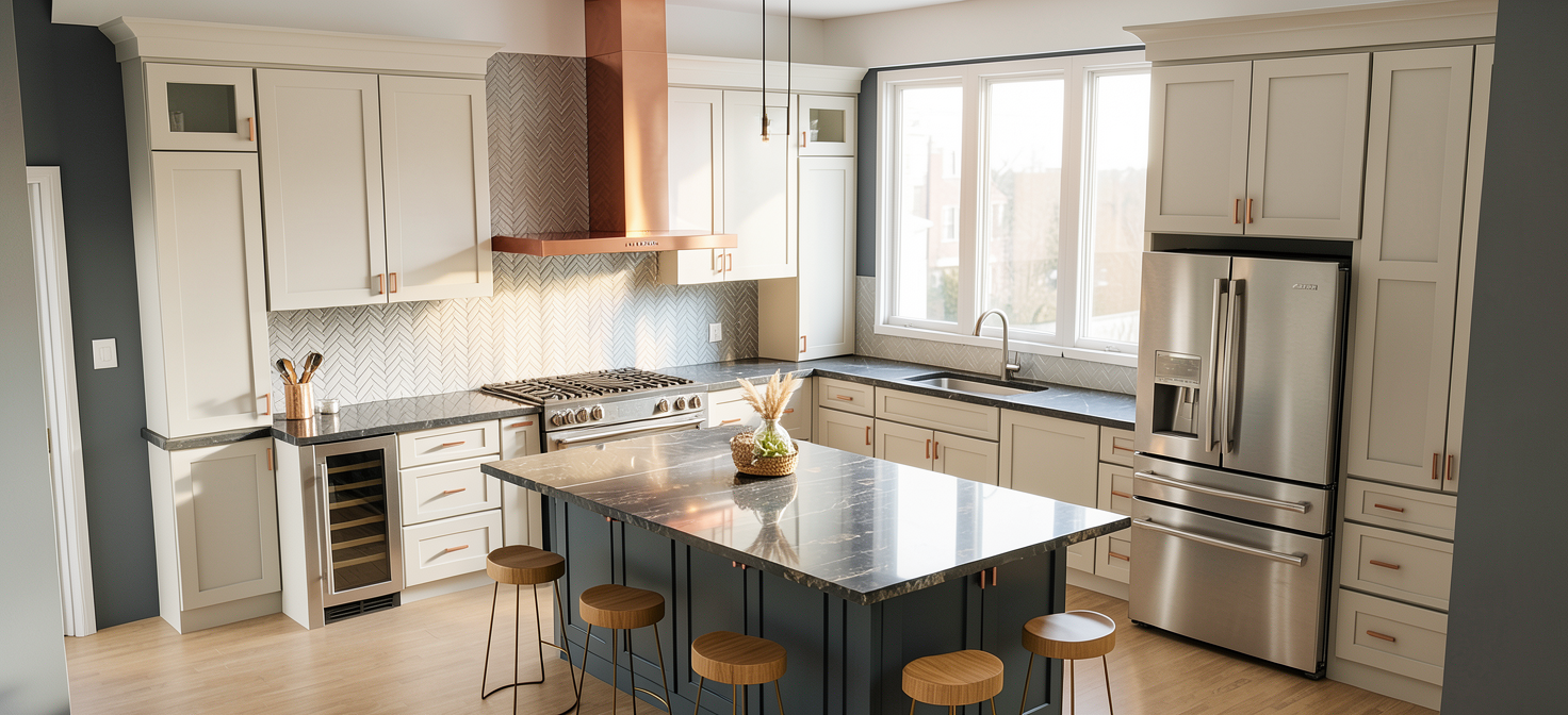 photorealistic architectural visualization of a proposed light industrial development in the uk two single storey warehouse buildings with simple rectangular forms light grey white precast concrete panel fa ades dark grey metal trim brown or dark grey standing seam metal pitched roofs large roller shutter loading doors and modest office glazing facing parking areas internal tarmac access road connecting both buildings marked staff parking bays with standard uk vehicles right hand drive cars white vans one articulated lorry positioned at a loading bay concrete service yards and realistic tarmac texture landscaped boundary with mature native uk trees oak birch maple forming a green buffer smaller planted trees along the access road maintained grass areas simple concrete kerbs lighting soft overcast daylight typical of the uk diffused light very soft shadows neutral sky with light cloud cover natural slightly muted colours even exposure context surrounding low rise industrial or commercial buildings in the background subtle uk road markings realistic scale and proportions camera elevated three quarter aerial view accurate and non dramatic perspective style planning submission visual documentary realism photorealistic no cinematic grading no dramatic lighting no stylisation not in america