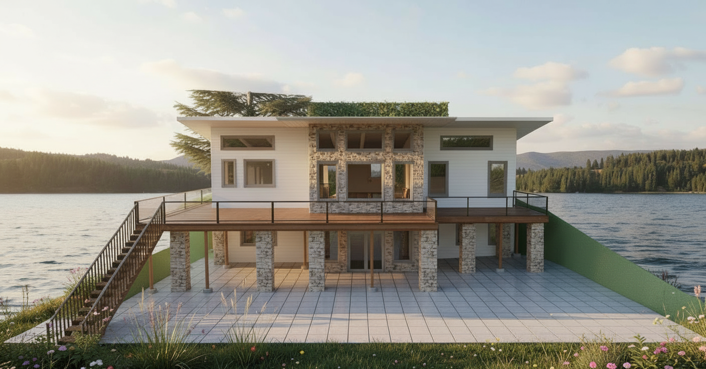 make background look like country road keep existing ground elevation that heads down to water