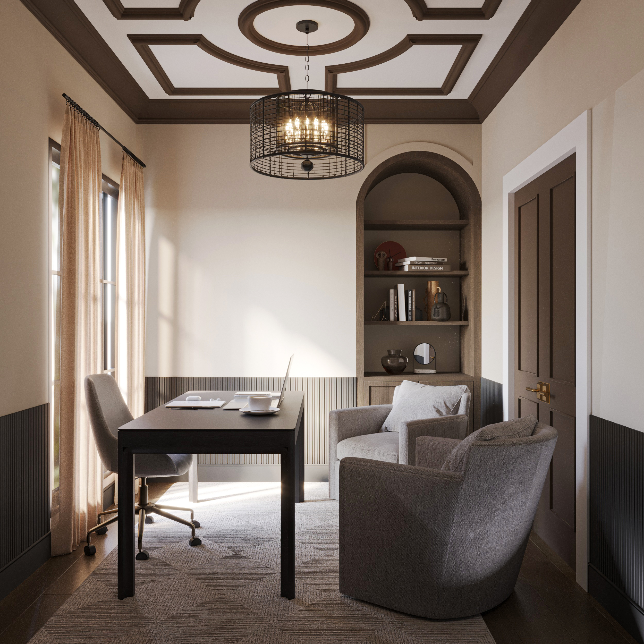 make the whole ceiling dark bronze less sunlight add picture wall art