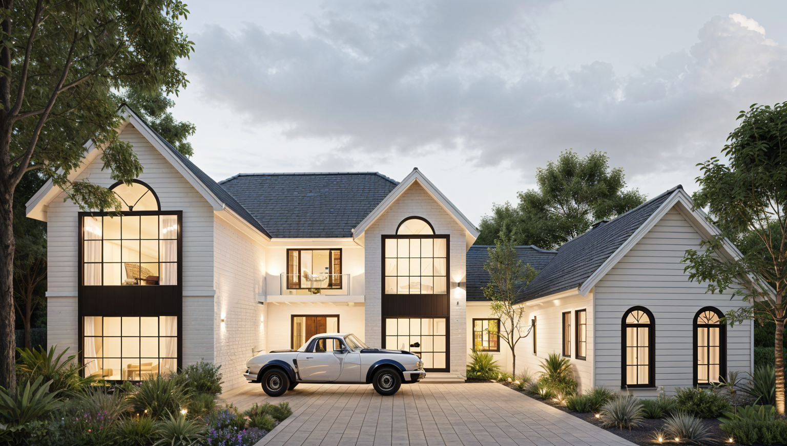 spanish villa white with black window frames