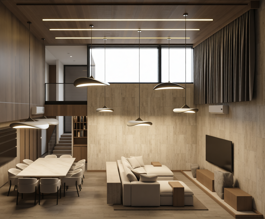 interior shot transform the provided axonometric top down apartment visualization into a realistic interior visualization viewed from ground level change the perspective from an overhead axonometric view to a human eye level interior perspective approx 150 170 cm camera height