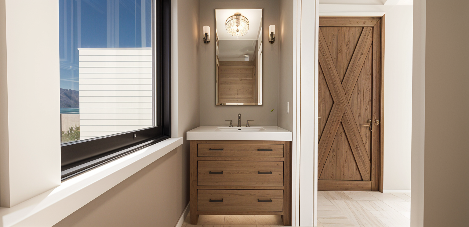bauhaus exterior shot keep wooden beams visible add grey double windows with no horizontal divider windows to openings add facade from vertical wooden stripes 15 cm add cottage interior add grass in front architecture