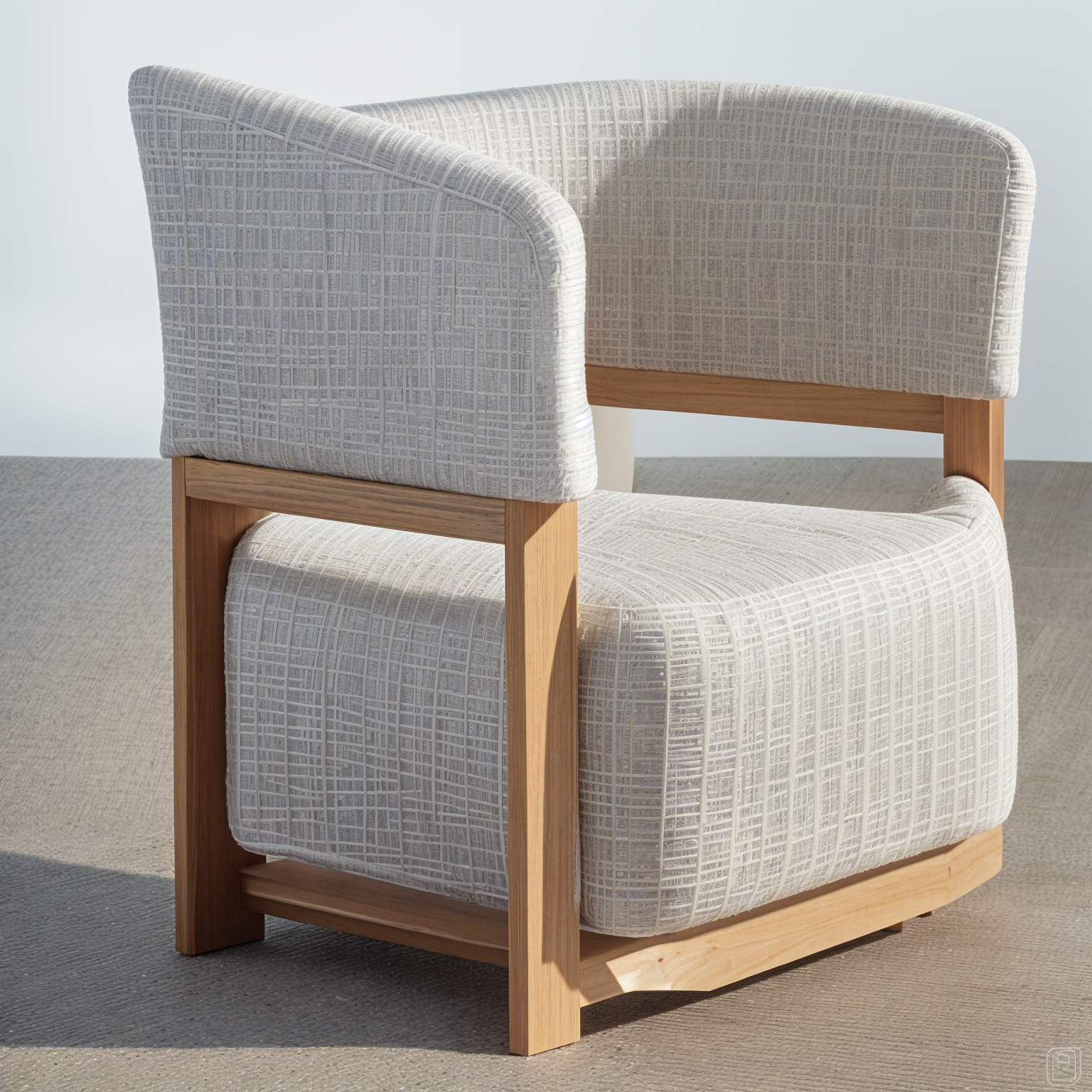 modernist perspective shot weaving inspired back chair wooden legs finish upholstered seat and back architecture