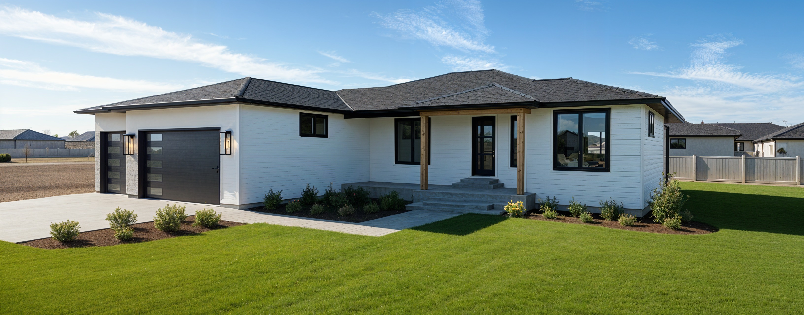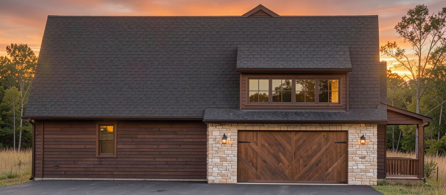 rock wall surrounding the right garage door wooden board and batt siding surrounding front door rock wall surrounding the window on the front right side everything else is lap siding