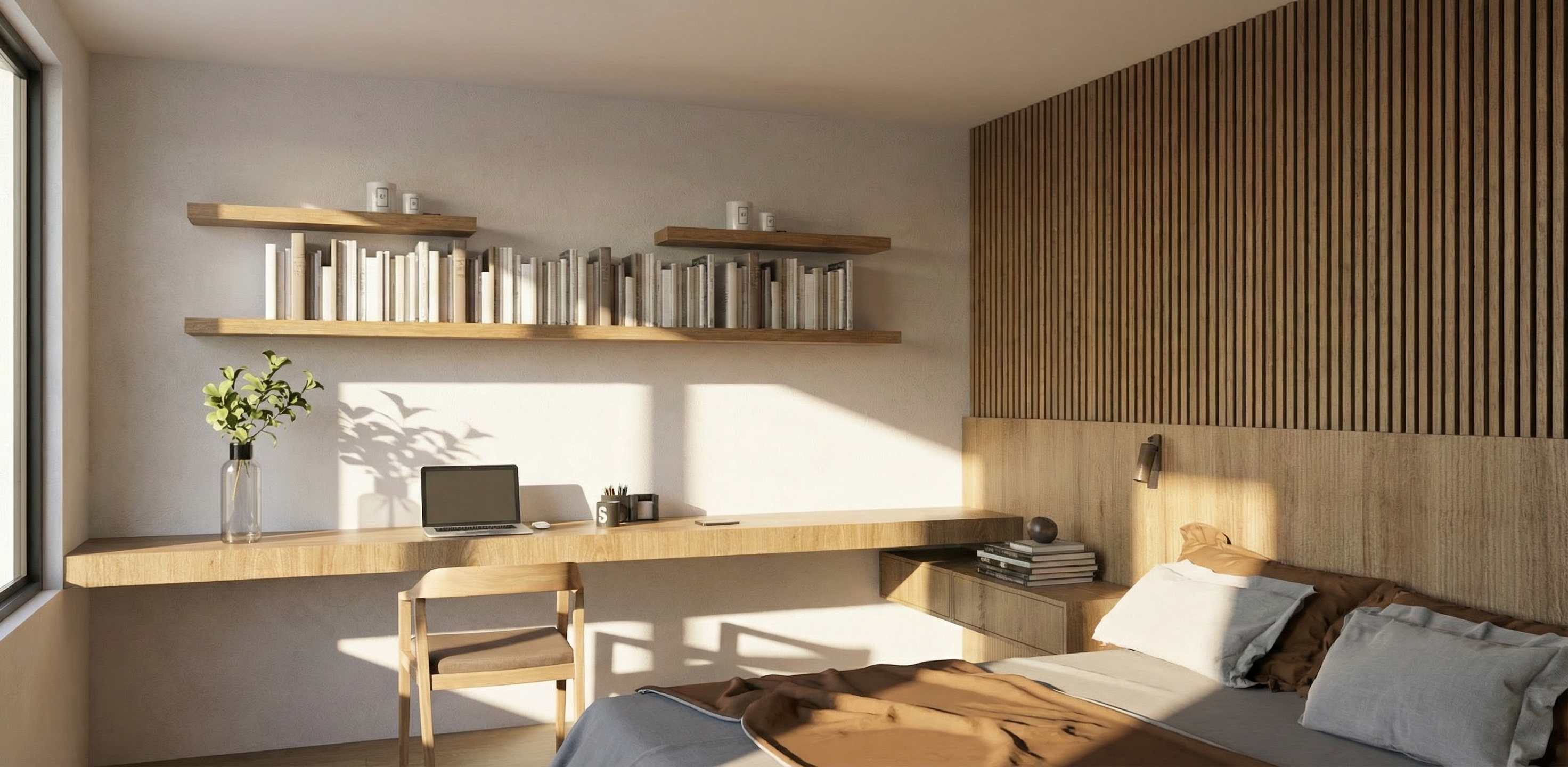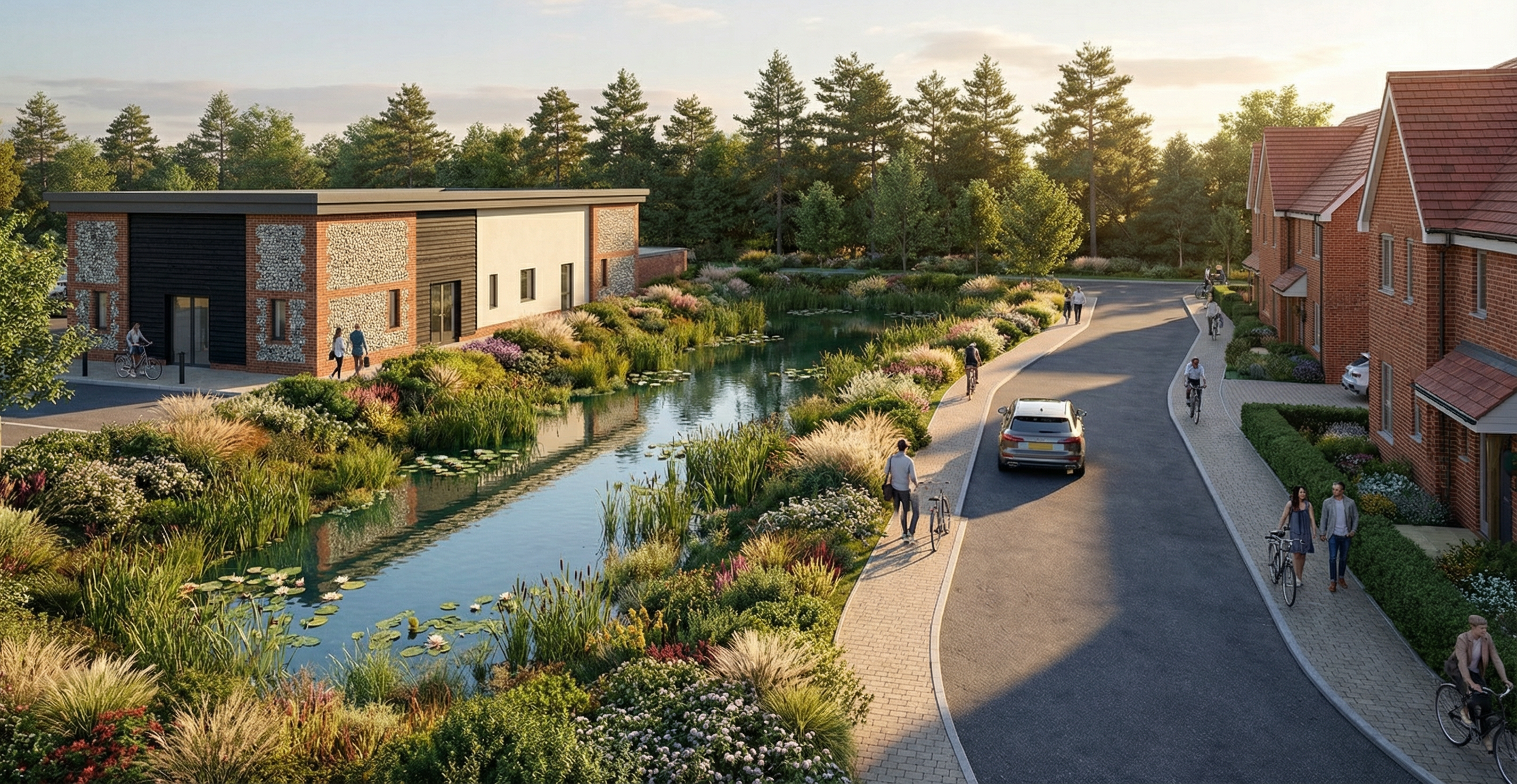 make look realistic add furniture add landscaping there is a tall hedge behind and to the left side of the building the ground behind the building is 5 feet taller than the patio