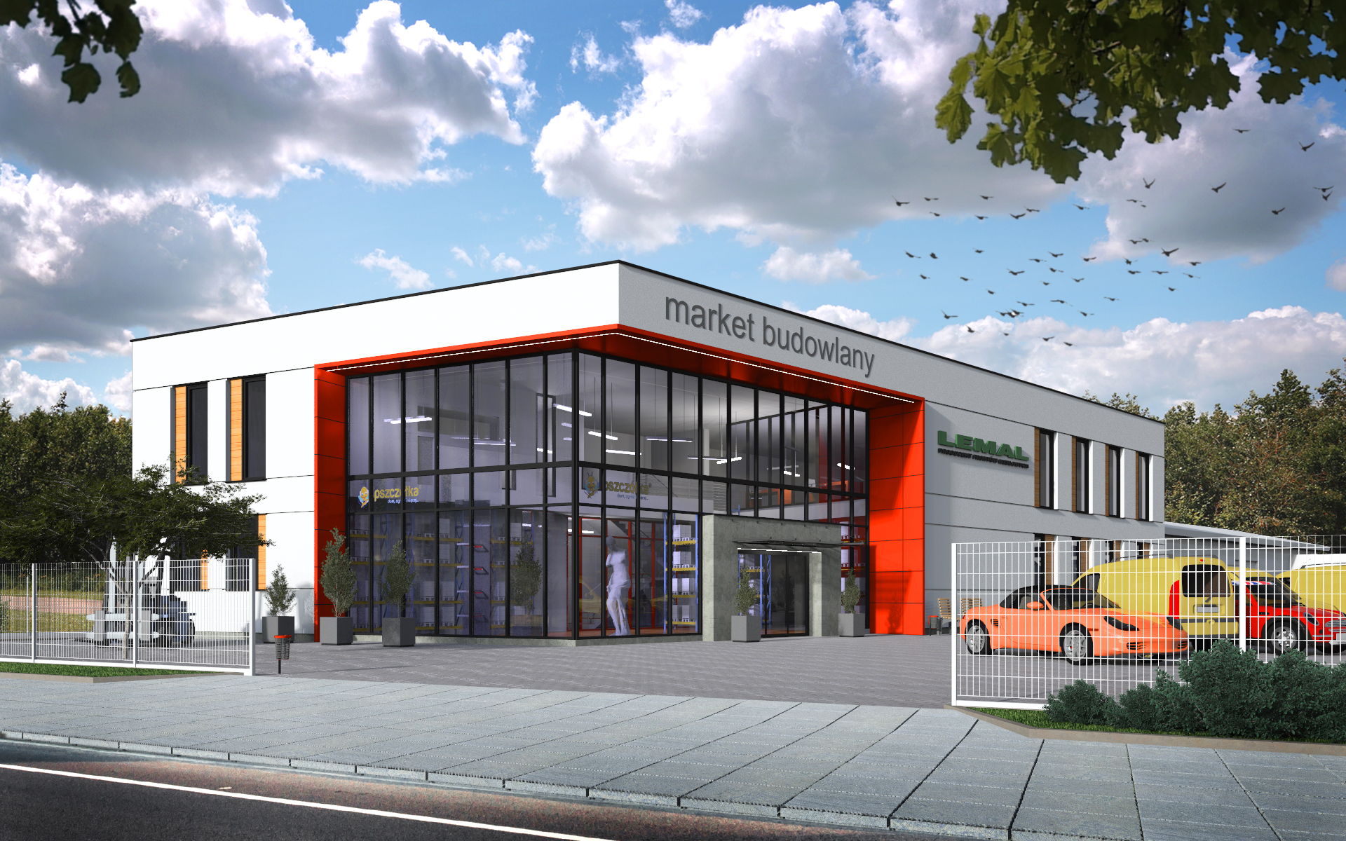 modern office building use facade materials such as architectural concrete glass drywood cladding around the windows spring view show puddles in the square add lots of people and cars