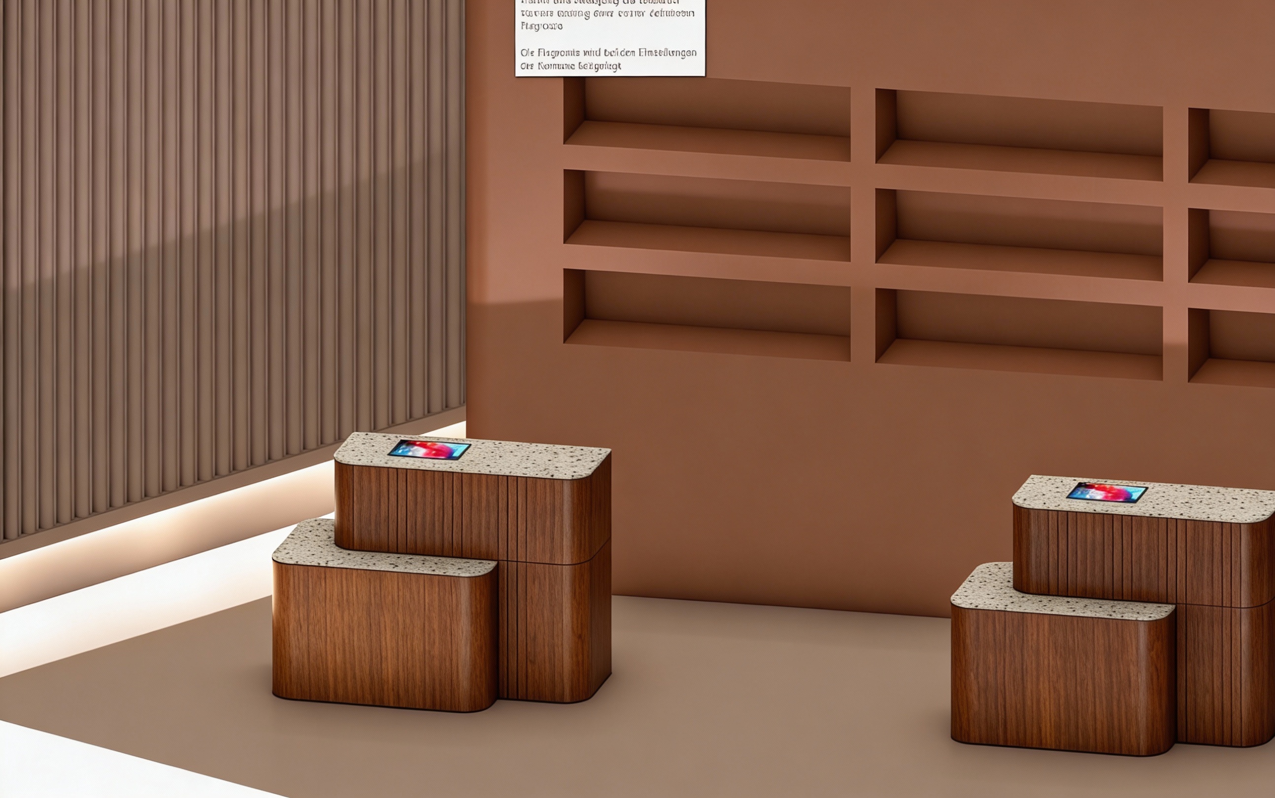 remove textbox and make brighter like profesionall foto shoot good lighting not dark wood is matt not shiny terracotta wall on the right is painted