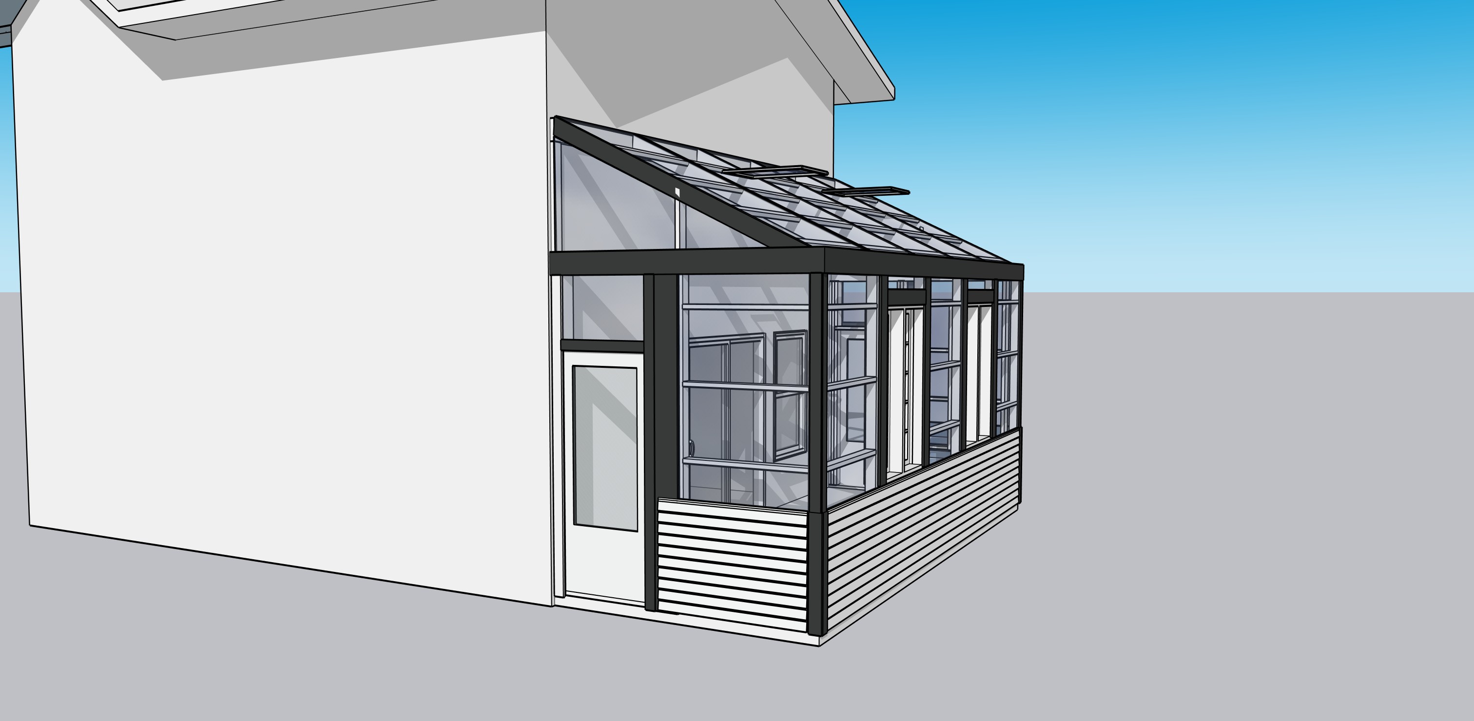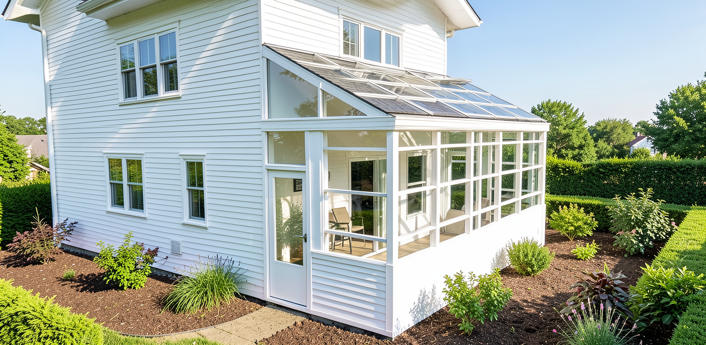 add hardie plank siding windows and roof to the main house add soil and landscape on the exterior and do not add any other structures make it photo realistic make it white elegant siding and landscape