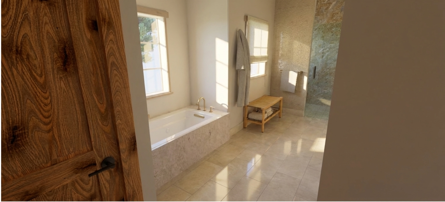 preserve the exact layout camera angle and placement of all elements do not move or redesign anything remove the tall cabinet tower and leave a doorway opening in it s place