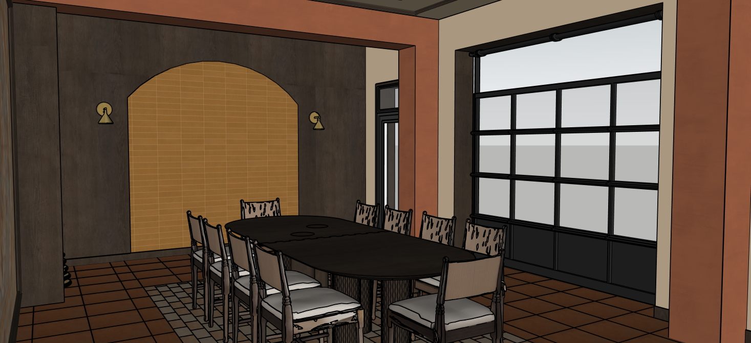 conserver la c ramique jaune dans l arche et ajout un paysage de rue vue par la porte de garage