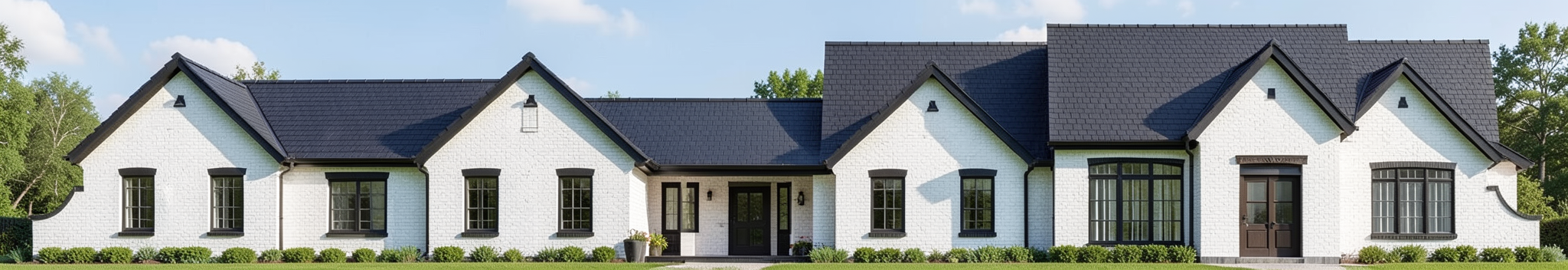white brick black shingle roof black trim