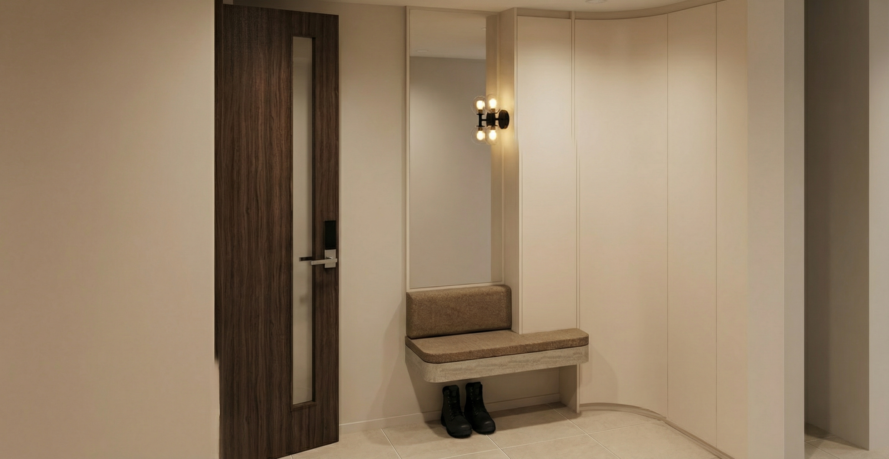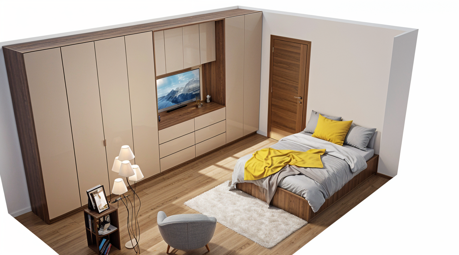 colour and wood texture less grains to remain as per original pictures floor in light beige tiles tv console wall in light beige microcement tv console and cabinet in muted dark ash blush as per original picture