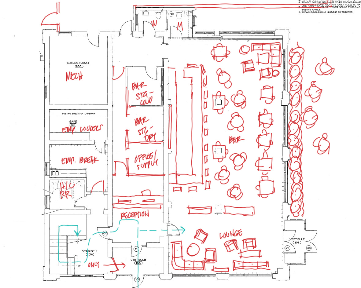 convert this floor plan into a architectural isometric 3d view of a living room show the space from an elevated angle with furniture walls and details visible create an isometric axonometric interior render dollhouse cutaway from the provided hand drafted floor plan of a historic commercial building boeckling building sandusky ohio the output should be a single isometric view showing the interior layout and furniture in 3d while remaining faithful to the plan critical geometry rules must follow do not change the floor plan geometry walls doors openings and room proportions must match the drawing exactly use the plan linework as the source of truth keep circulation and room boundaries unchanged the right side of the plan is the focus render it as a hotel bar and lounge the left side can be simplified and muted if needed isometric presentation style 3d cutaway architectural axon look with the roof removed and walls cut cleanly at a consistent height dollhouse clean professional archviz style readable not overly busy accurate furniture scale and spacing commercial hospitality proportions not residential program for the right side hotel bar lounge a main bar long bar with working side behind it bar stools backbar shelving and bottle display booths banquettes along the perimeter walls and several intimate table groupings 2 4 tops a defined lounge zone with sofas club chairs small cocktail tables and side tables keep egress paths clear and realistic for a commercial space 1920s 1930s prohibition speakeasy vibe key aesthetic dark rich wood floors walnut mahogany warm wood paneling wainscot where appropriate brass accents bar foot rail light fixtures hardware deep green accents and iconic green glass banker s lamps used throughout on tables and or bar warm amber lighting low and intimate mood subtle art deco geometry patterns rugs screens or trim upholstery in green velvet leather and warm neutrals small marble or dark wood table tops lighting mood warm late evening interior ambience speakeasy mood but still bright enough to read the space in isometric soft pools of light at tables and bar gentle shadows no harsh white lighting narrative negative instructions do not do not alter the plan layout wall locations door swings openings or room sizes do not add new rooms or corridors do not change the scale of the historic plan do not convert it into a residential layout do not use modern minimalist furniture or bright contemporary finishes avoid neon industrial loft styling or nightclub aesthetics avoid warped geometry duplicate furniture floating objects illegible text or perspective camera distortion keep true isometric axonometric do not obscure the right side bar and lounge with excessive decorative clutter use the same furniture as shows on the plan do not change the orientation of the floorplan