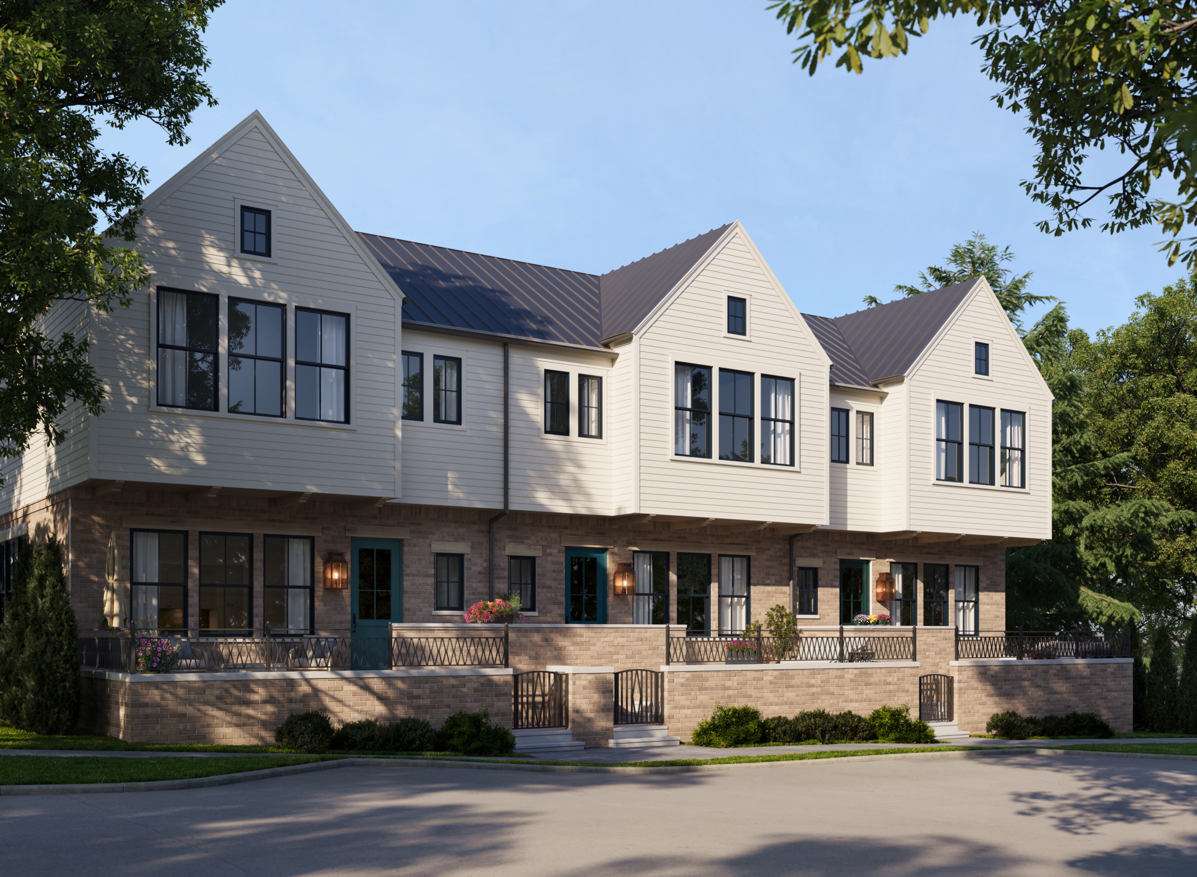 render in architectural watercolor style add couple walking on the sidewalk and a cyclist on the street