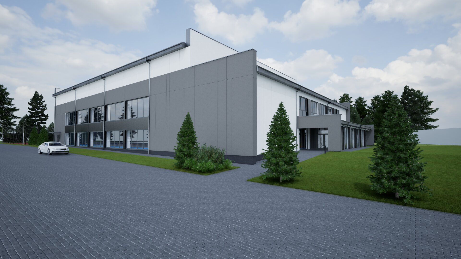 a modern gymnasium building with large glass windows through the windows outdoor sports fields are visible where a match is currently in progress players in motion dynamic action captured mid game realistic reflections on the glass natural daylight streaming in soft shadows high detail ultra realistic high resolution cinematic lighting architectural visualization photorealistic 8k quality