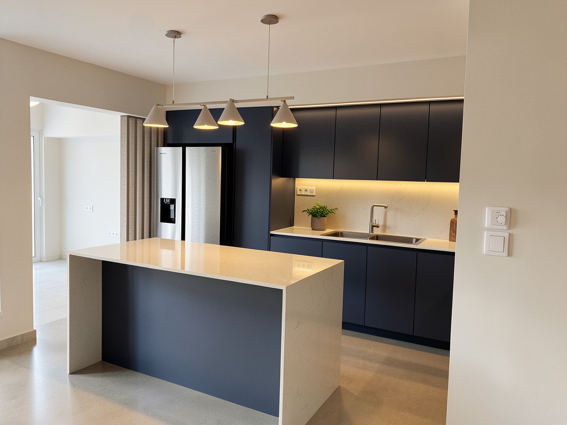 modern bathroom light marble countertop and dark walnut wood