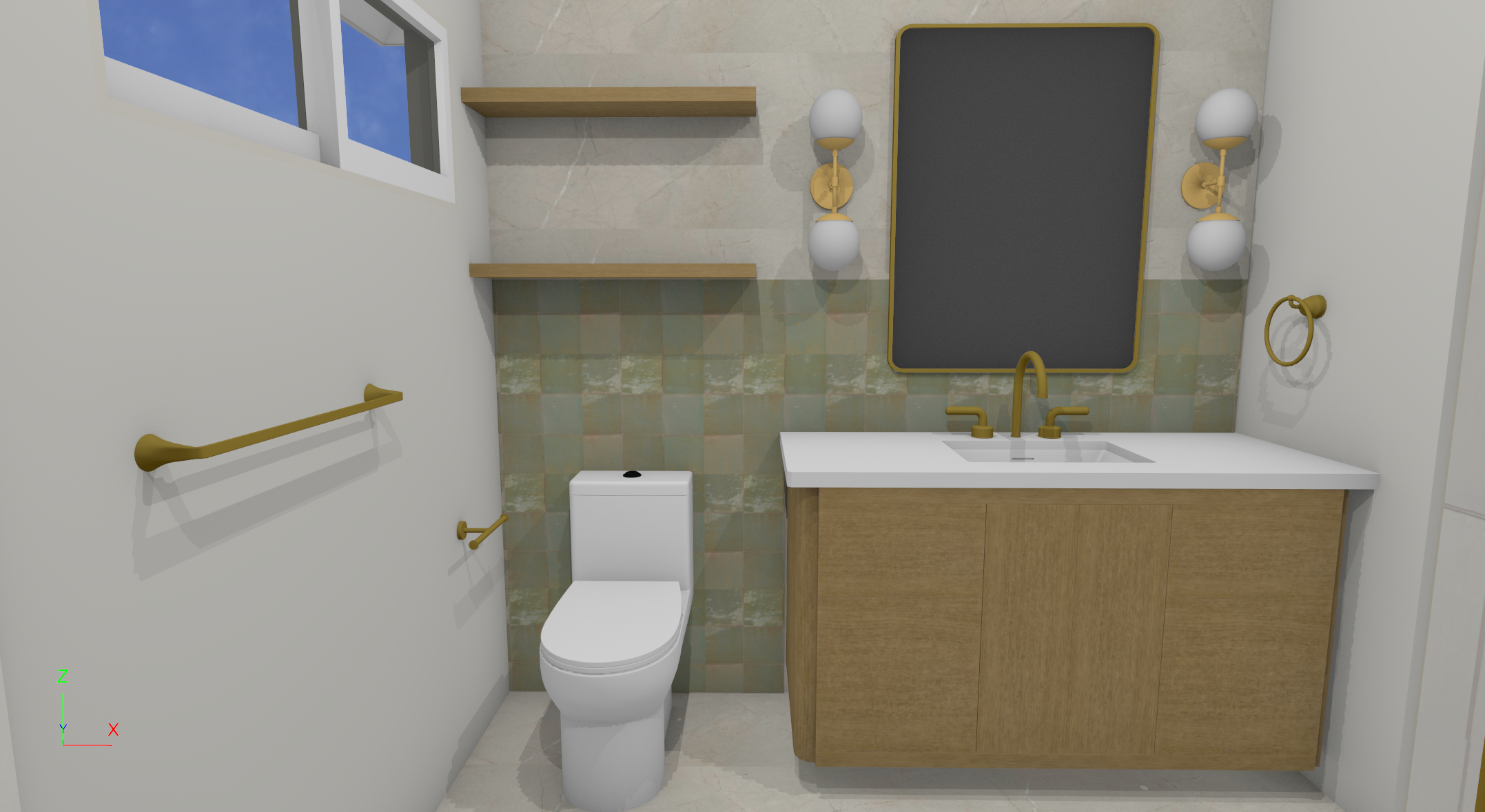 realistic look for this bathroom dont change any loction or color add some bathroom decoration add natural light