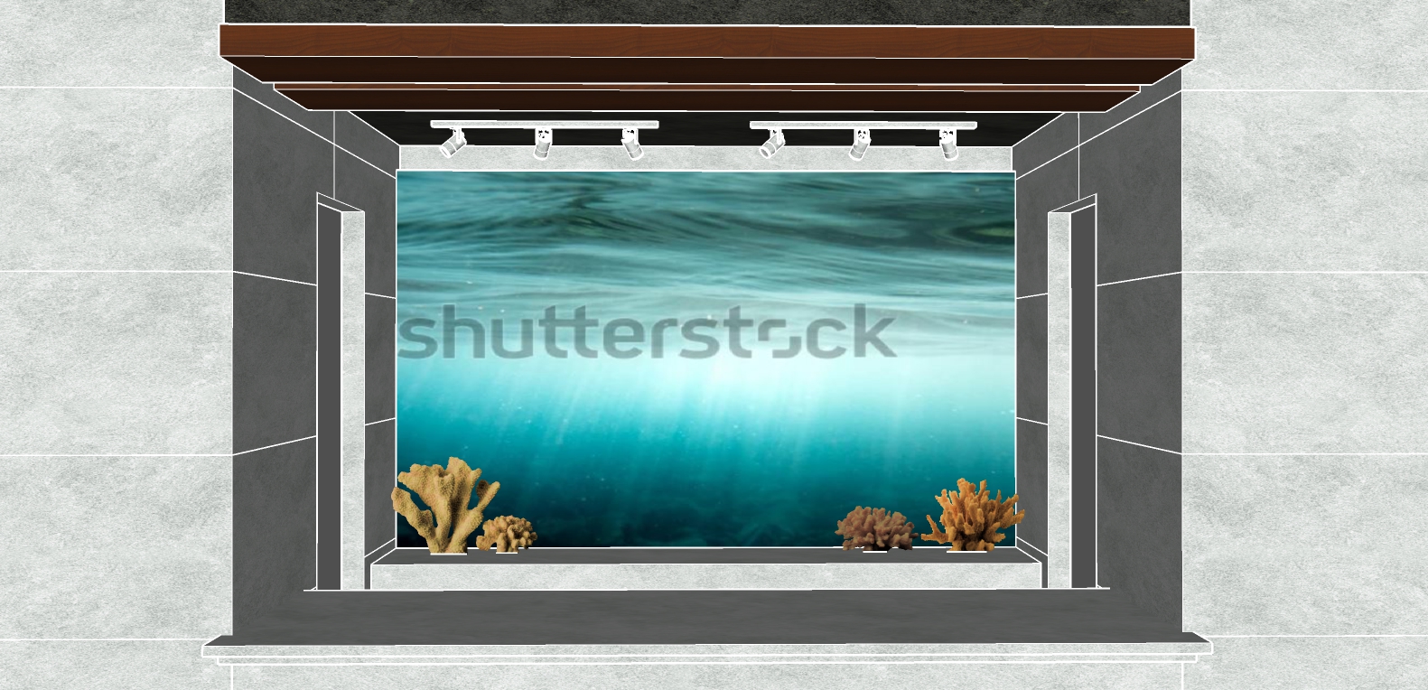 can you make a render of it and the ocean is just a led display with warm lights on the spot lights and please remove the watermark shutterstock it is a reception area