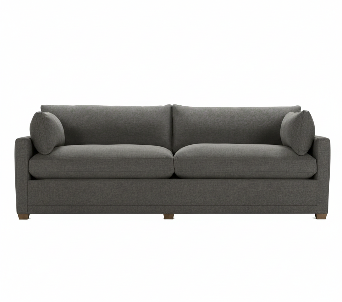 replace the sofa fabric with the reference fabric make the sofa 100 long leave the background white