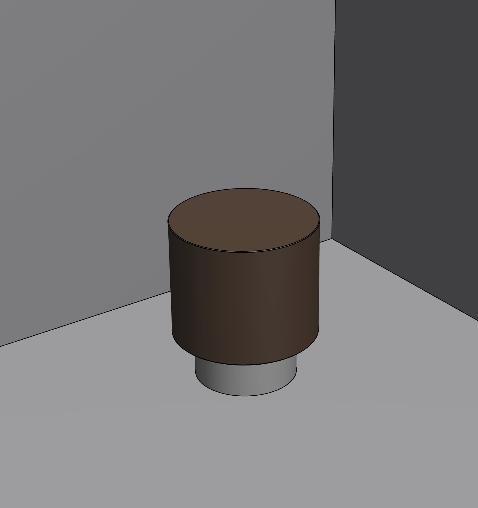 place this side table in a white minimalist background the table finish is in a crown less dark chocolate tone of wood the base in a bronze metallic epoxy tone