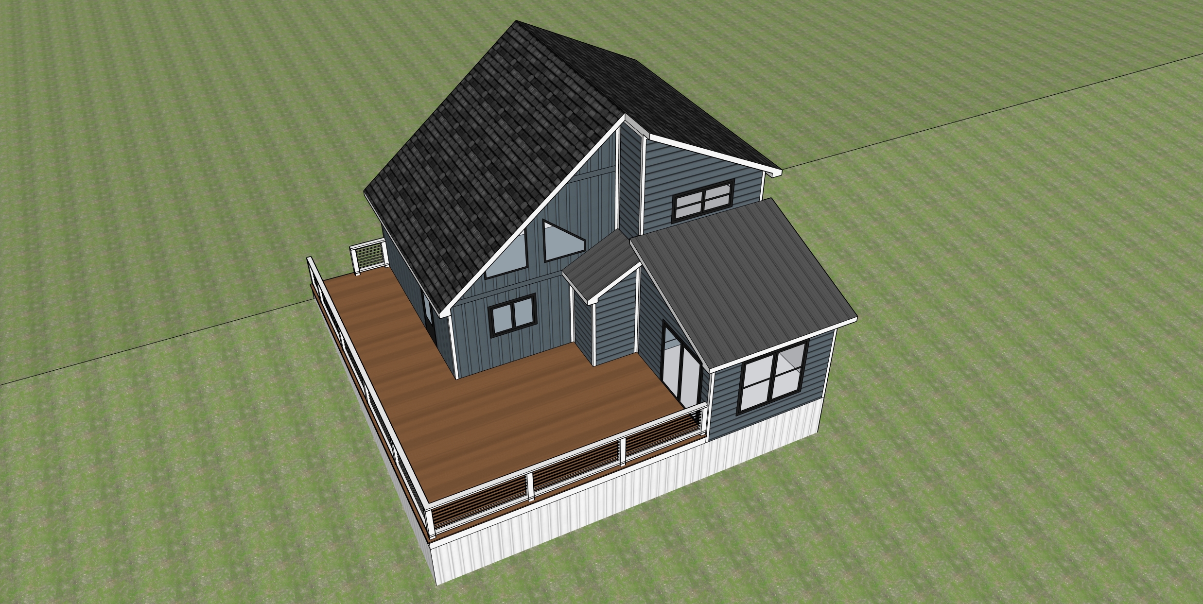 add wooded lot add landscaping maintain colors make realistic porch railing and boards under porch white birds eye view looking down