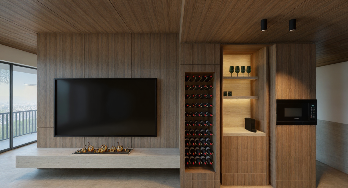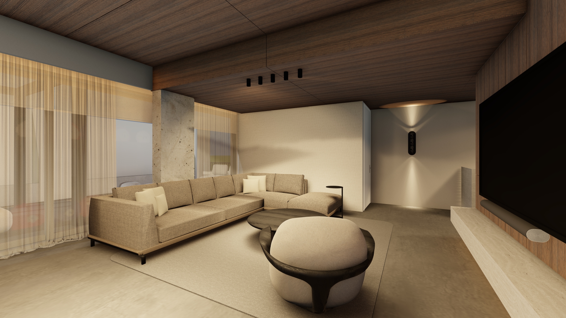 render this image in a realistic style maintaining the exact same composition furnishings natural lightning and design without adding or removing elements