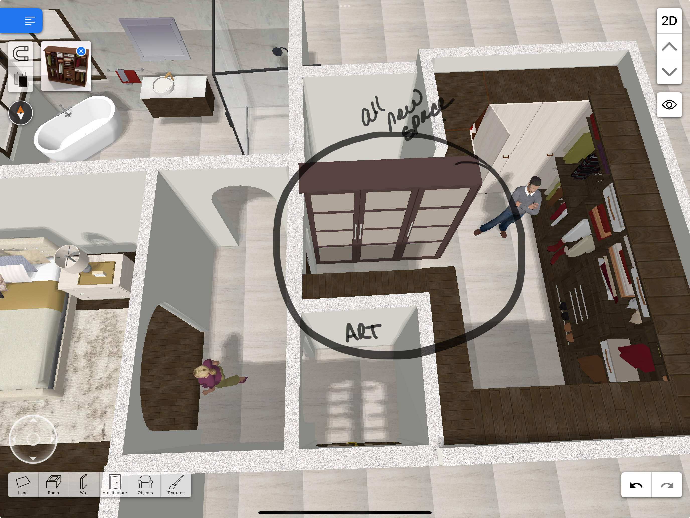 interior shot this is a high end luxury primary bathroom and closet please render in natural materials such as calcutta gold marble and soft beige warm tones flooring should be brazilian walnut hardwood in the closet