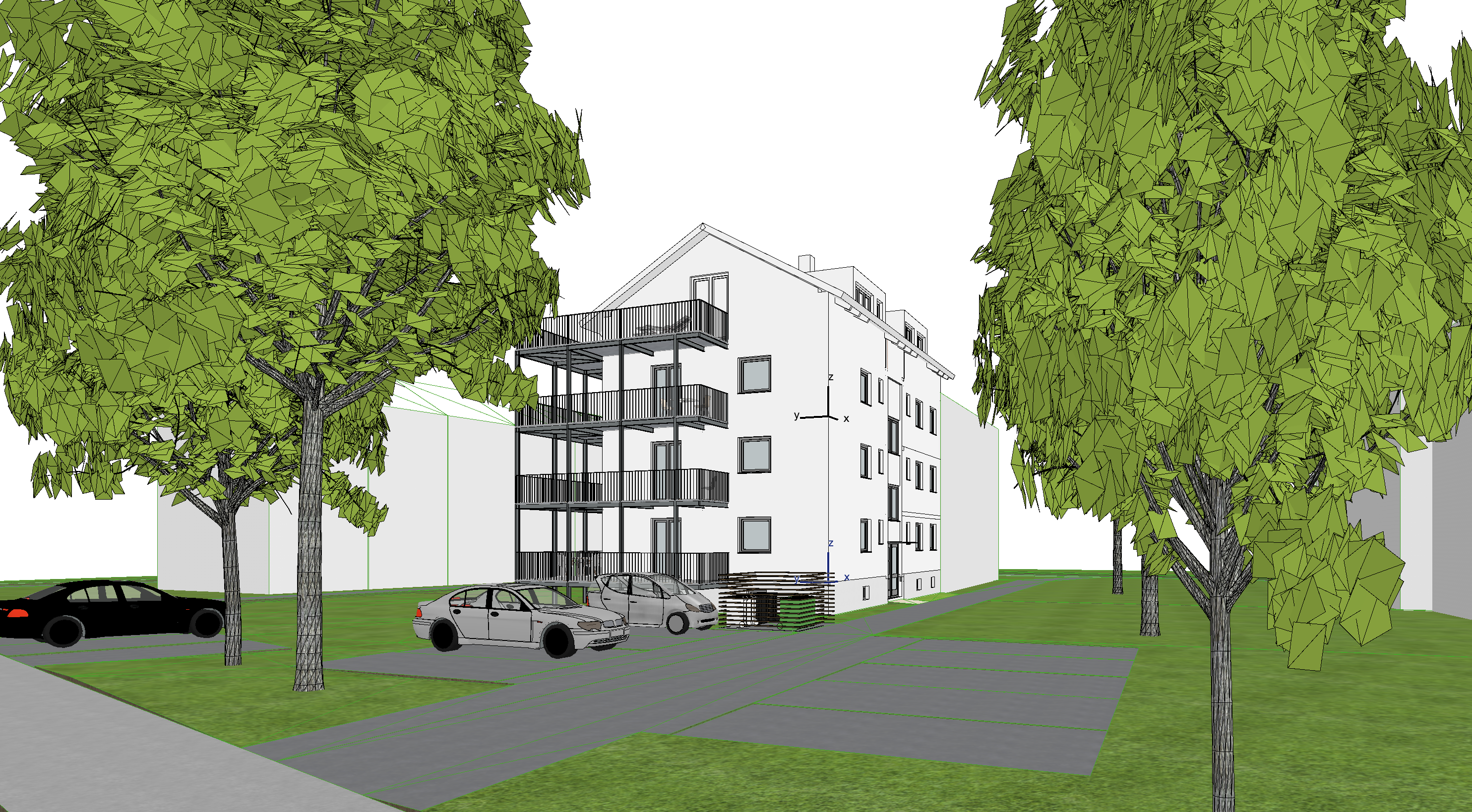enhance the existing architectural rendering while strictly maintaining the original camera position perspective framing and composition do not alter the proportions or overall structure of the existing building beyond the planned design changes create a highly realistic and forward looking atmosphere that conveys quality sustainability and contemporary living the visualization should feel authentic and believable like a professional architectural photograph extend and continue the surrounding terrain so the environment appears complete and natural the landscape should seamlessly blend into the background avoiding abrupt edges or unfinished areas add realistic ground textures subtle elevation changes if appropriate and natural transitions the lawn in front of the building is clean include 1 3 people in a subtle and natural way to give a sense of scale and livability their presence should feel candid and unobtrusive add carefully placed plants and a few trees to enhance realism ensuring they are proportionate and regionally appropriate vegetation should look natural with realistic lighting and shadow integration use soft natural daylight with balanced exposure and realistic global illumination materials should feature physically accurate textures and reflections with slight imperfections to avoid a cgi look avoid dramatic or overly stylized effects aim for a calm elegant and professional presentation the final result should resemble a high quality real estate marketing visualization realistic refined future oriented and inviting