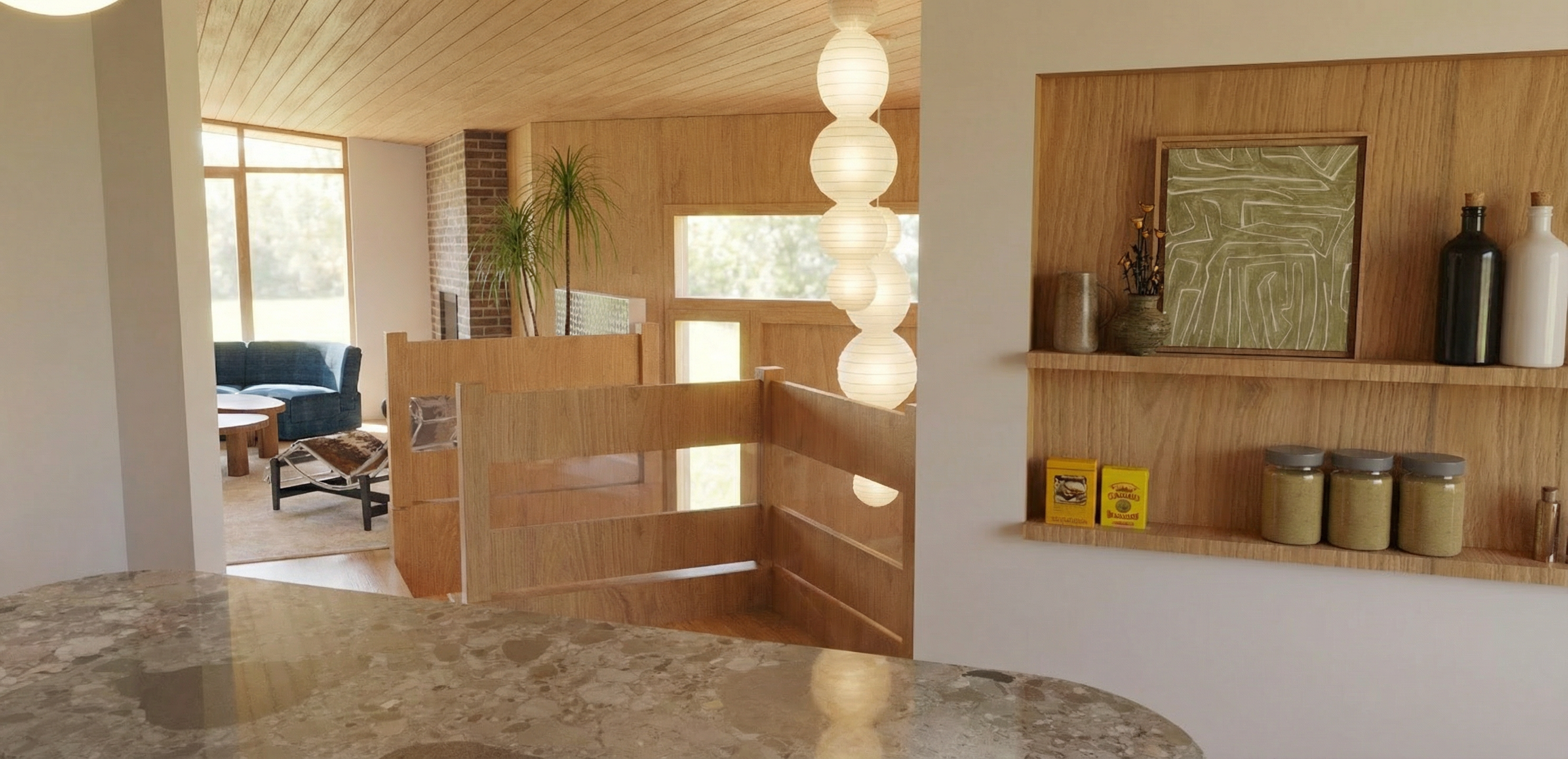 remove flowers and add a nice modern art picture on the wall of the dining table