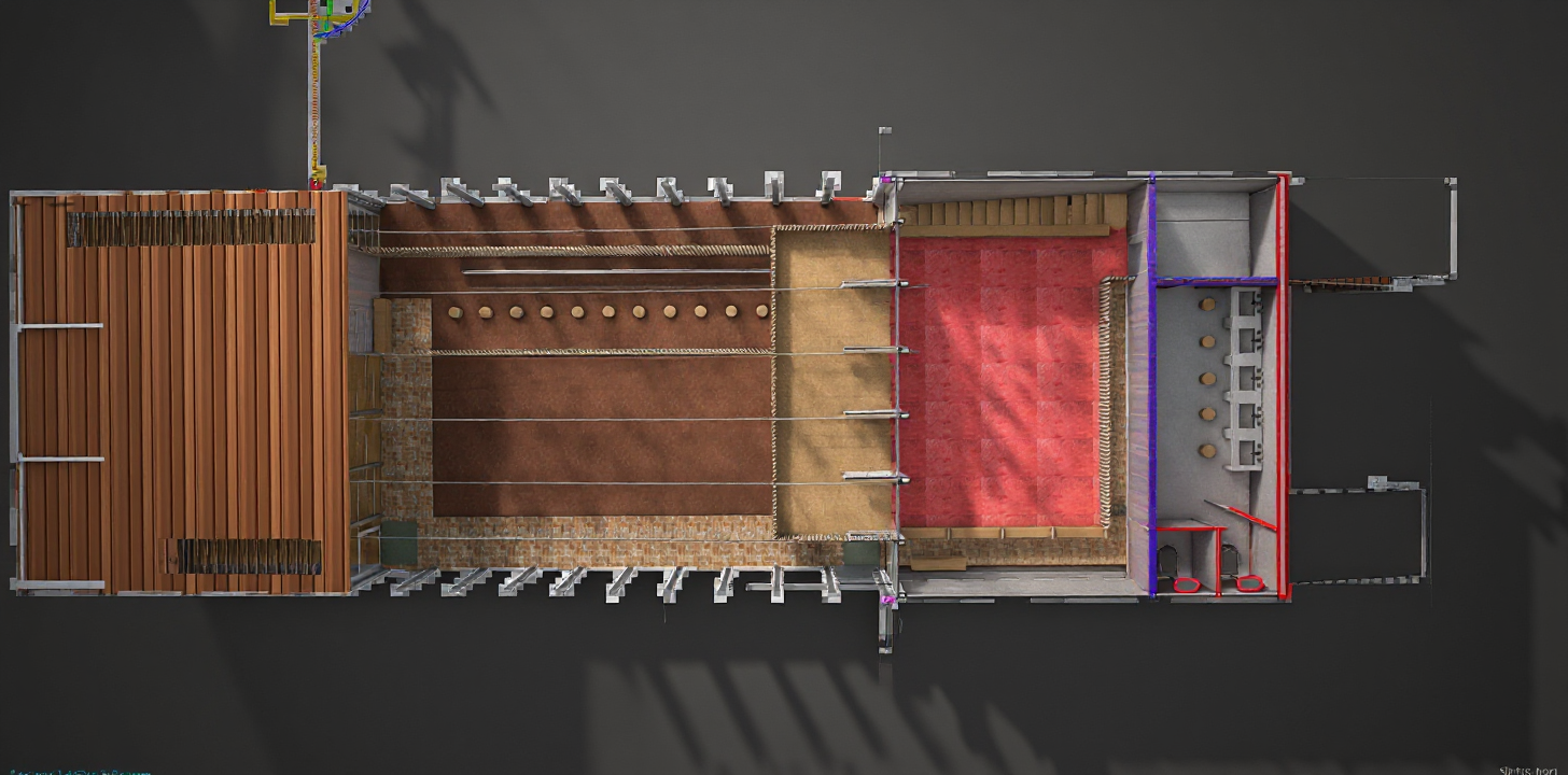 make a rendered section with no dimensions white background black linework delete unnecessary line work maintain colours and textures from original image making it a rendered section
