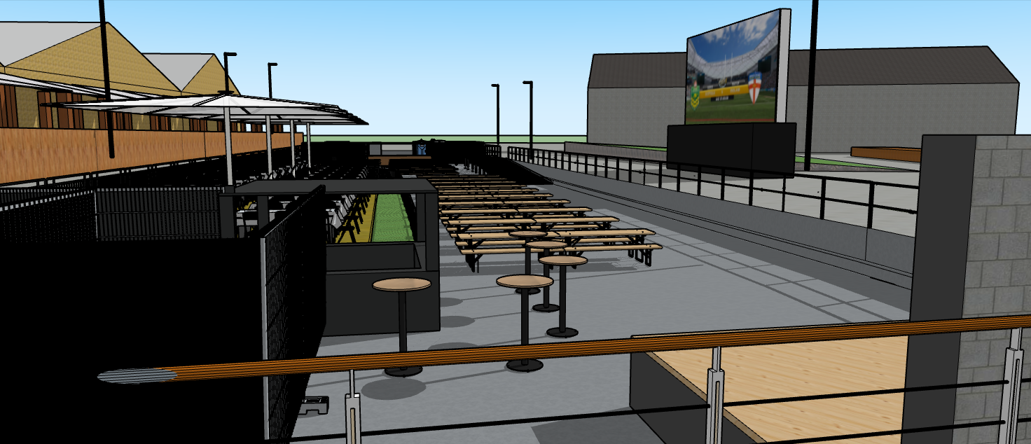 image to image prompt ultra realistic architectural visualization of the provided sketchup model absolute hard lock geometry surfaces critical do not change geometry do not move resize rotate or replace any objects do not add or remove any surfaces do not add any platforms decks terraces steps edges or extensions do not modify any ground dock quay or plaza surfaces keep exact layout proportions placements and distances maintain original camera angle and composition extreme water control critical there must be absolutely no water inside the dock event area the dock must be a dry solid surface only no water basins no canals no reflections no wet surfaces water is allowed only in the real harbor basin outside the dock structure zero water allowed between seating areas restaurants or walkways seating furniture lock critical use only the seating tables and benches that already exist in the original sketchup model do not add new chairs benches stools bar stools edge seating or tribune style seating do not create seating along edges railings or dock sides people must only sit on existing benches and chairs no people sitting on dock edges or new furniture people distribution tables and benches must be almost full long table bench setups seat four people on each side majority of people seated almost all people facing the big screen watching football some natural pedestrian movement only restricted zones no people on toilets no people inside toilets no people inside or on crane no people backstage terrace railing lock left restaurant terrace must have continuous black iron railing railing height must be natural human height no high fencing background urban city environment modern scandinavian harbor district no forest no countryside scene goal create a vibrant packed football fan zone with strong atmosphere high energy and collective focus on the big screen without changing any geometry surfaces or furniture layout lighting golden hour early evening warm ambient light strong led screen glow render style ultra realistic premium architectural visualization cinematic but natural professional event rendering sharp focus realistic shadows realistic reflections no stylization no fantasy look negative prompt lim inn ekstremt viktig water inside dock canal flooded surfaces wet ground reflections on plaza edge seating new chairs new benches new furniture new terraces new decks people sitting on edges people sitting on new objects people in toilets people on toilets people in crane forest background countryside geometry changes redesign fantasy architecture no water next to big screen