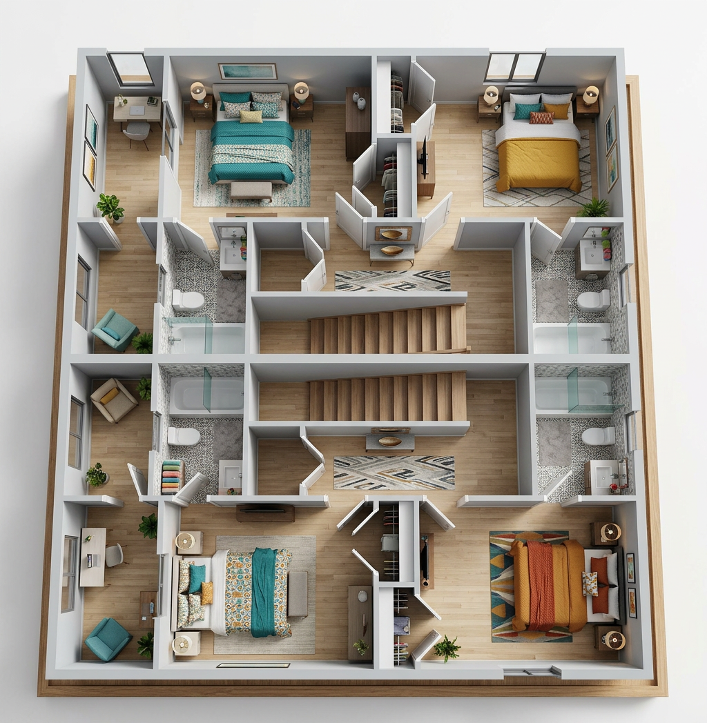 convert this floor plan into a realistic isometric 3d view of a full house show the space from an elevated angle with furniture walls and details visible this is living room and kitchen use the same furniture as shows on the plan do not change the orientation of the floorplan