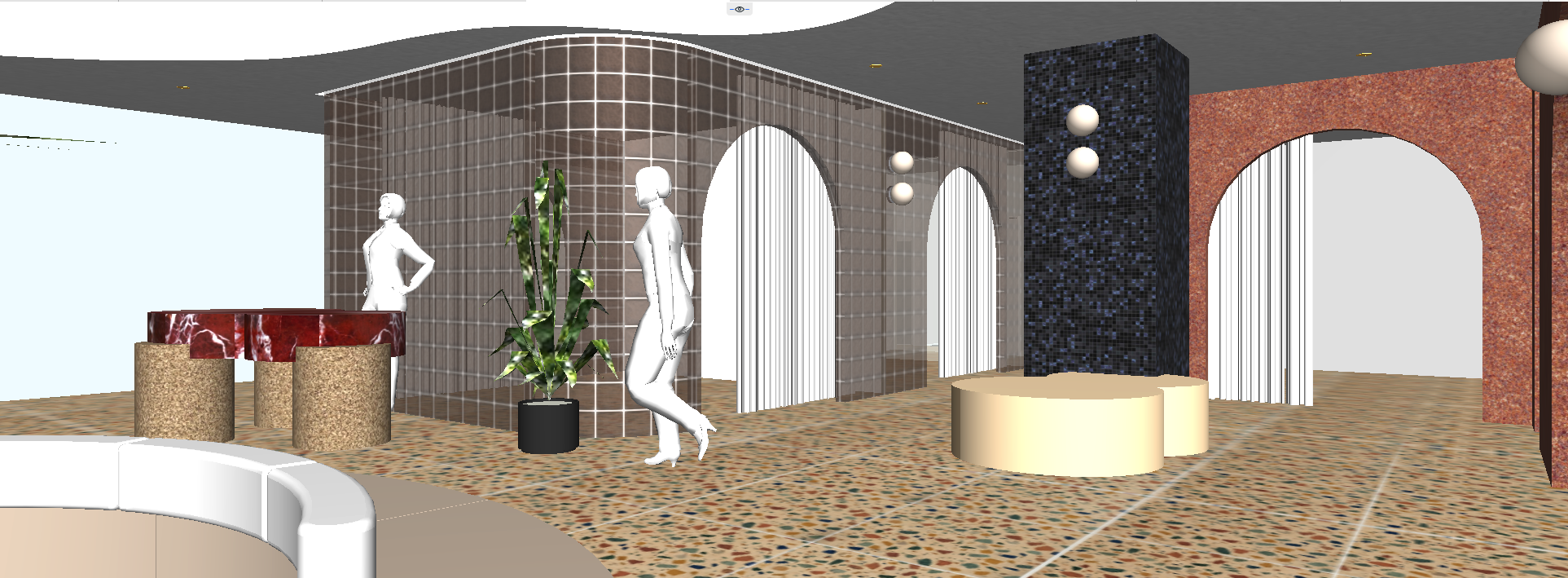 beautiful warm day spa subdued lighting change human figures to 2 x females interior scene