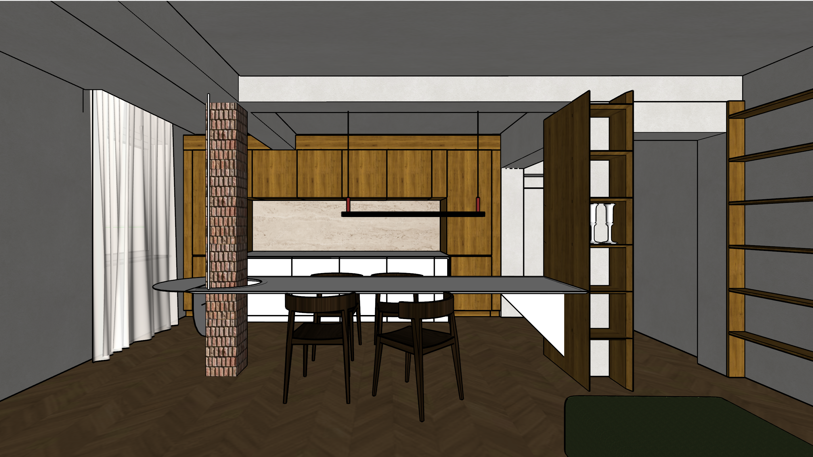photorealistic image walls and ceiling from light white beige microcement floor from light oak single window behind the linen curtains natural daylight bright atmosphere put some cups on the shelves