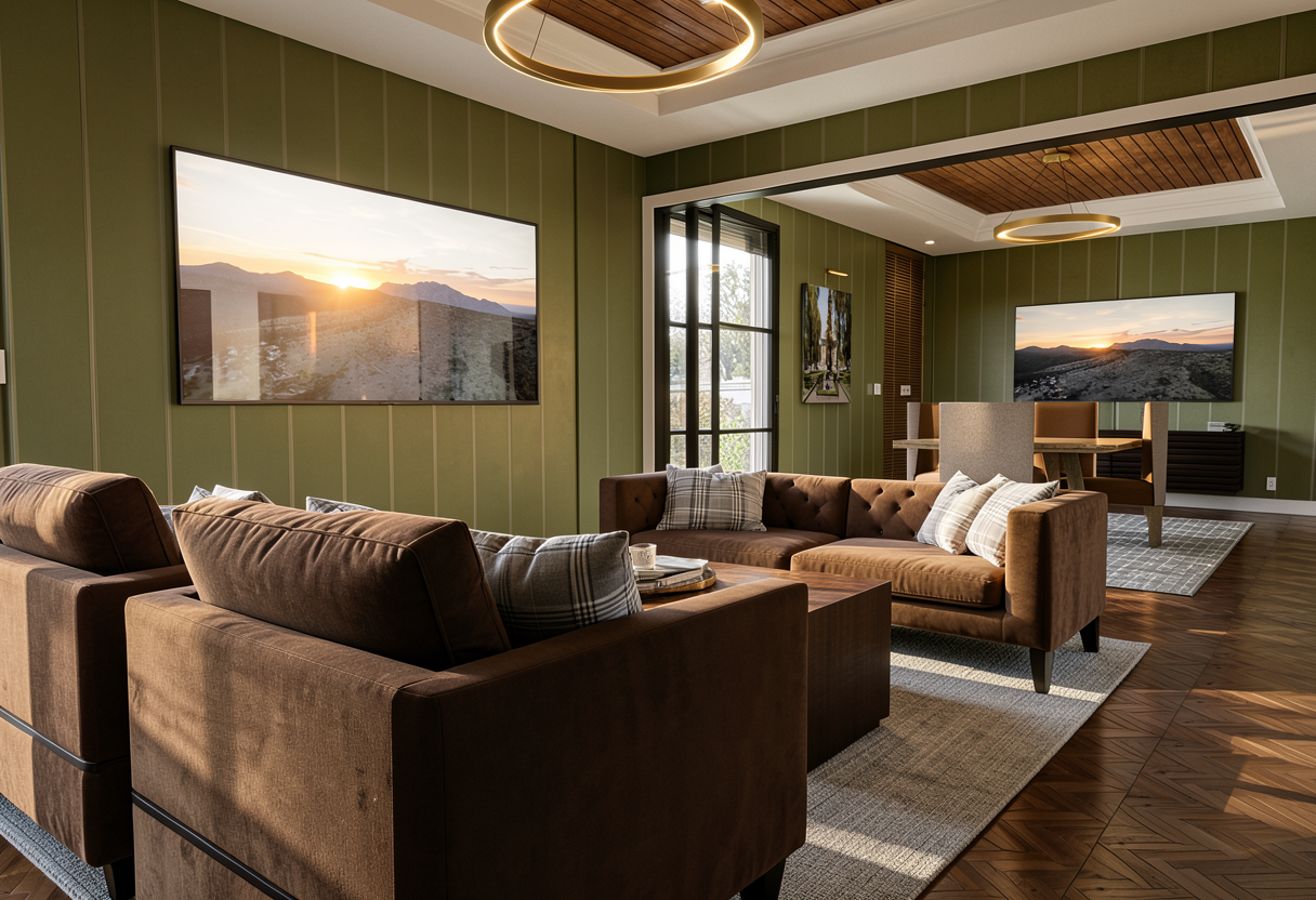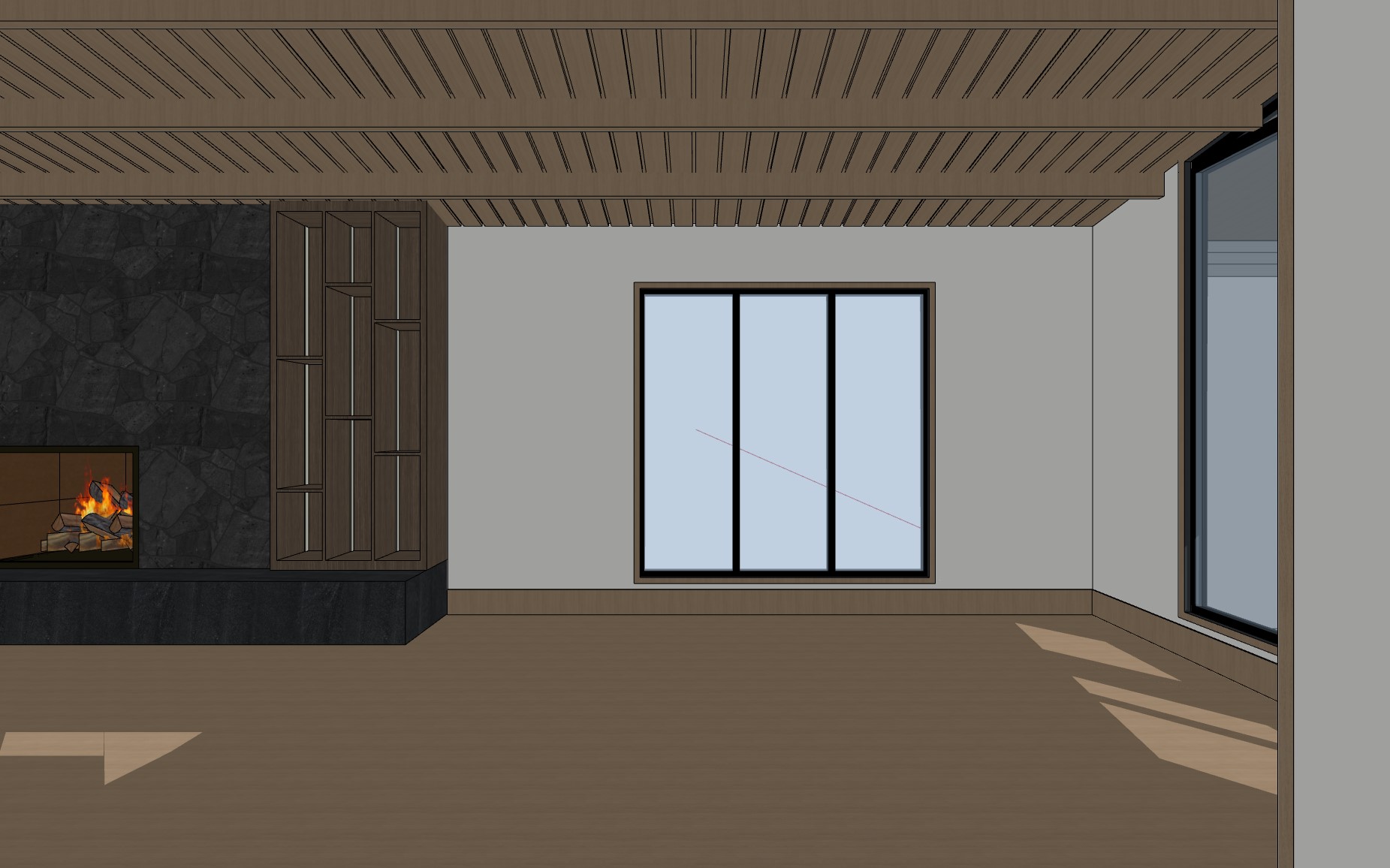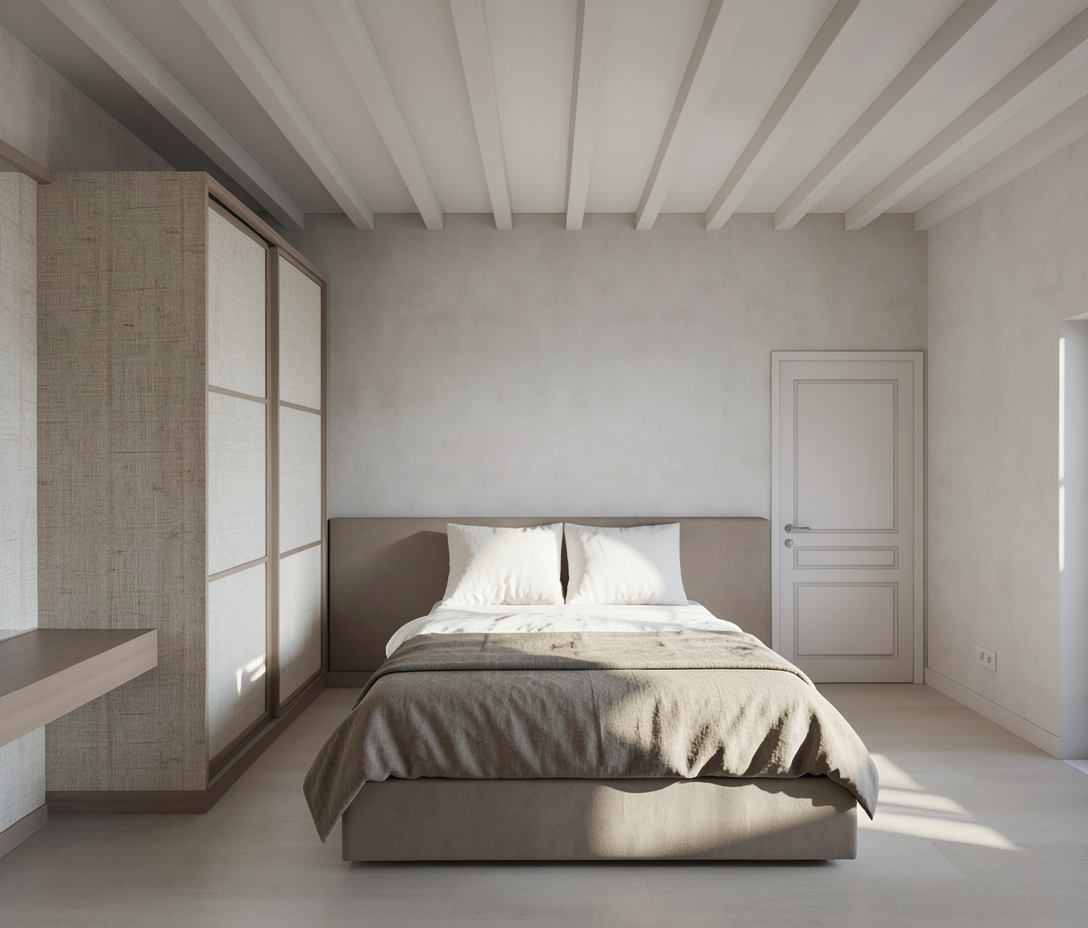 photorealistic enhancement of the provided architectural render preserve the exact architecture layout materials furniture placement and fixtures from the original image with no redesign or modifications the purpose is only to improve realism and lighting quality apply physically accurate global illumination and natural light behavior lighting should feel balanced and natural as in professional interior architectural photography soft indirect daylight fills the space with gentle light bounce from surrounding surfaces shadows are soft subtle and physically realistic with natural falloff all materials remain unchanged but respond to light more realistically stone surfaces with natural micro texture wood grain with depth matte plaster walls with soft diffusion and brushed metal fixtures with correct reflections no surfaces emit light unless they are actual light fixtures plumbing fixtures such as shower heads and faucets must remain non emissive and only reflect ambient light render as high end interior photography using a full frame camera with a 24 35mm architectural lens balanced exposure realistic dynamic range subtle depth of field and natural color grading the image should look like a professionally photographed luxury interior rather than a computer render do not change architecture do not change materials no redesign no new objects no additional lights no glowing fixtures no light from shower heads or faucets no dramatic shadows no surreal lighting no warped geometry no stylization the windows looking out to the exterior should be displaying mountains in the distance some trees and later in the afternoon there should be led light strips inside each cubby on the left side running vertically