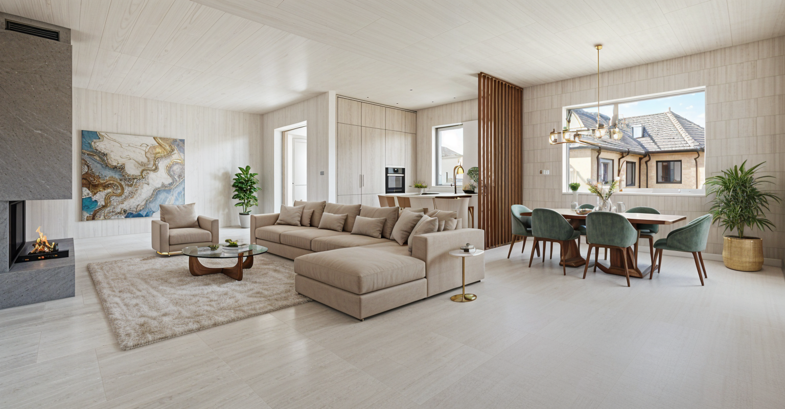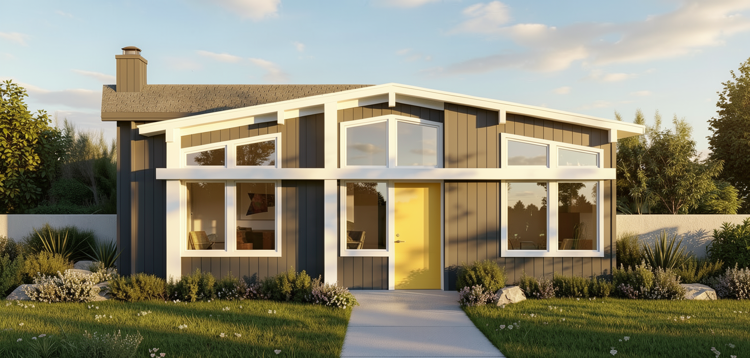 clean up this rendered image and eliminate the fence and background landscaping on either side of the home