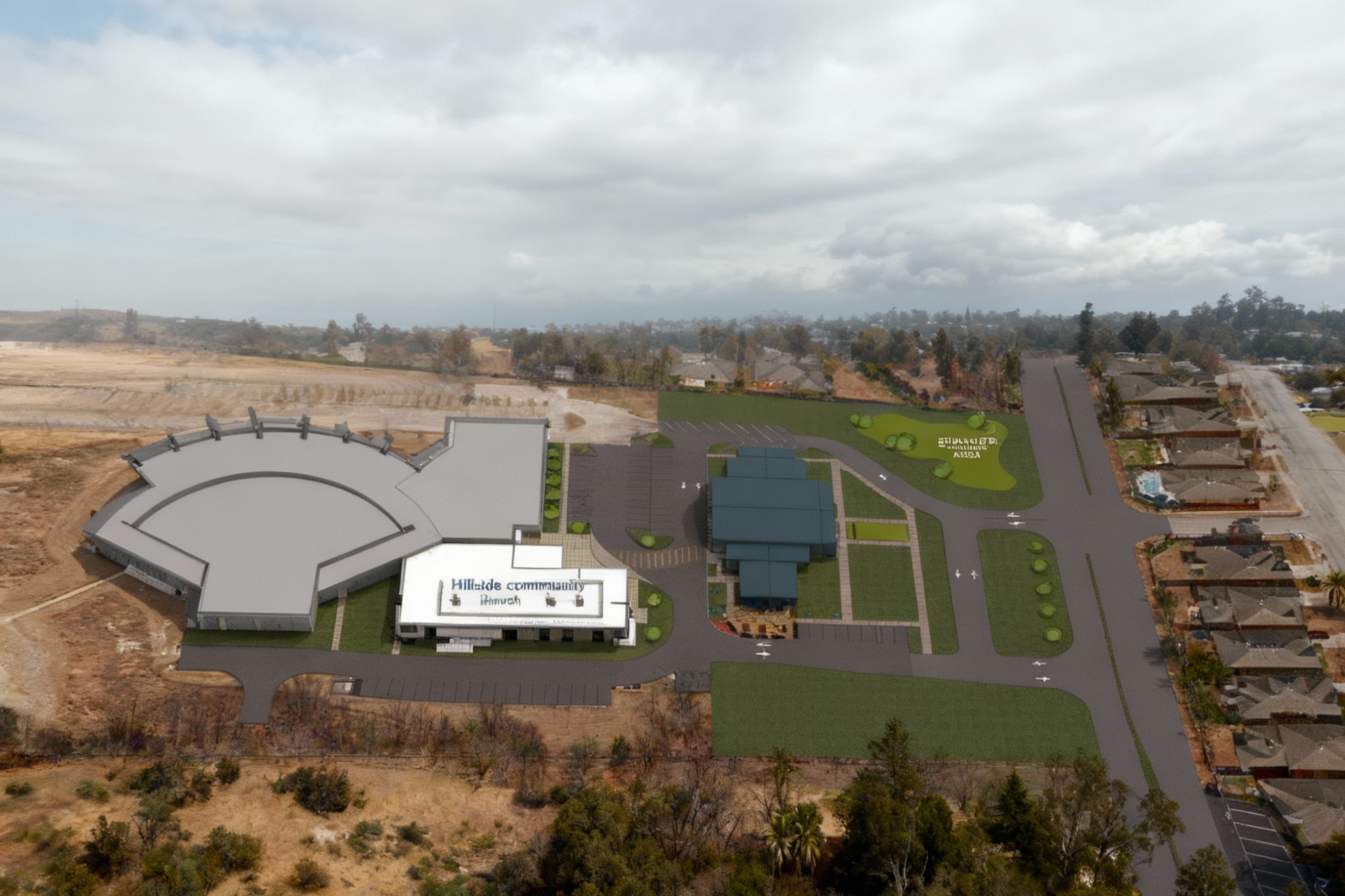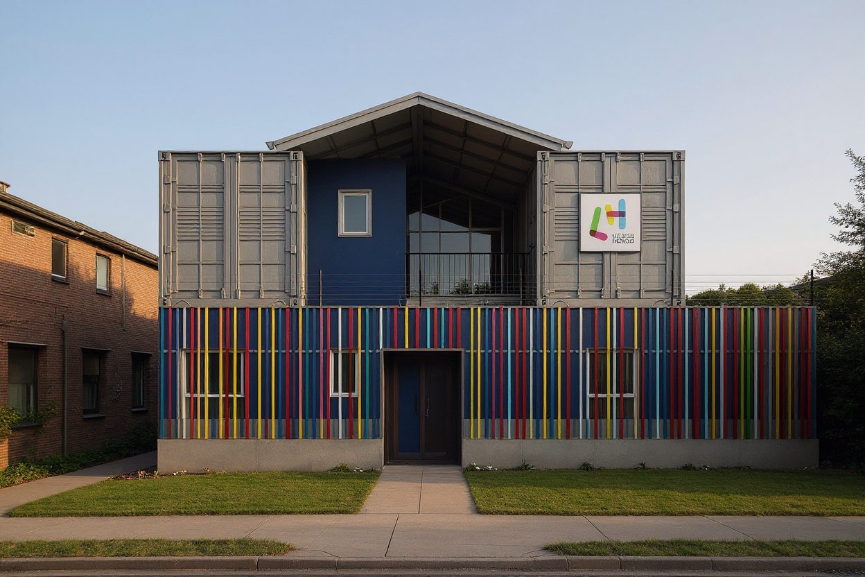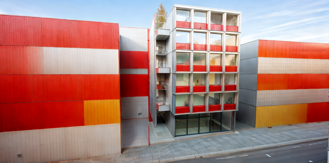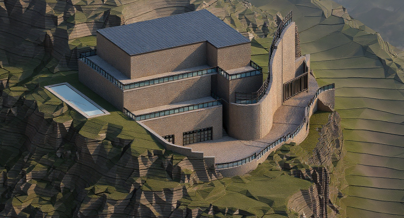 keep the current render exactly as it is do not modify any colors materials lighting geometry proportions or surrounding elements no global changes of any kind are allowed the only modification to apply is to the central space on the second floor which must be converted into a fully open void that passes completely through the building from front to back for this central second floor space there is no back wall no rear enclosure no glazing no glass no solid surface no depth closure no visual termination this space must render as a complete perforation through the building mass fully transparent all the way to the background with visible sky or distant neutral background through it with zero architectural elements inside the void