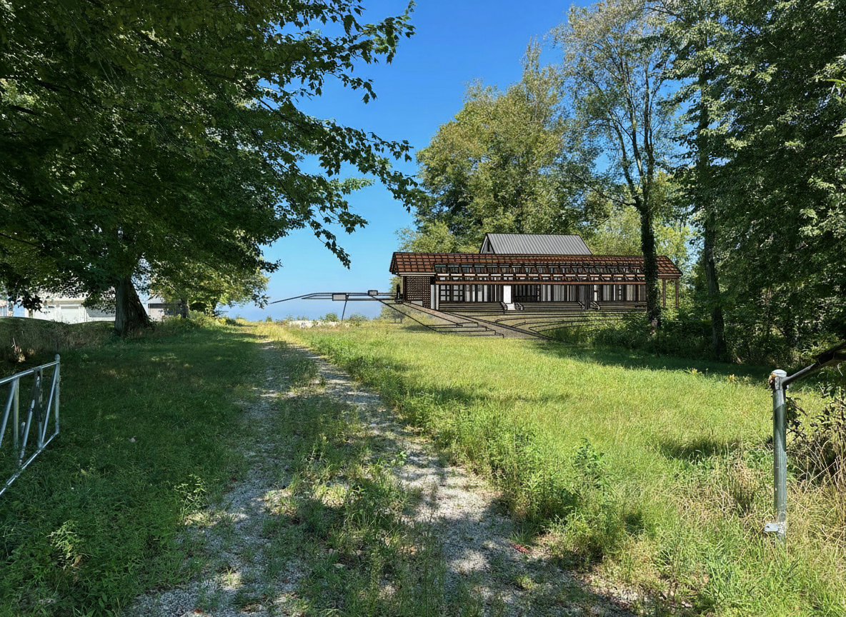 add glass facade on top of the entrance between the apartment blocks keeping it only in the middle of the blocks