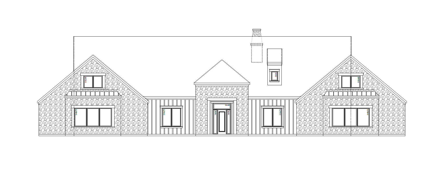 use light earth tone natural stone dark earth tone board and batten hardie board black window frames dark metal standing seam day light